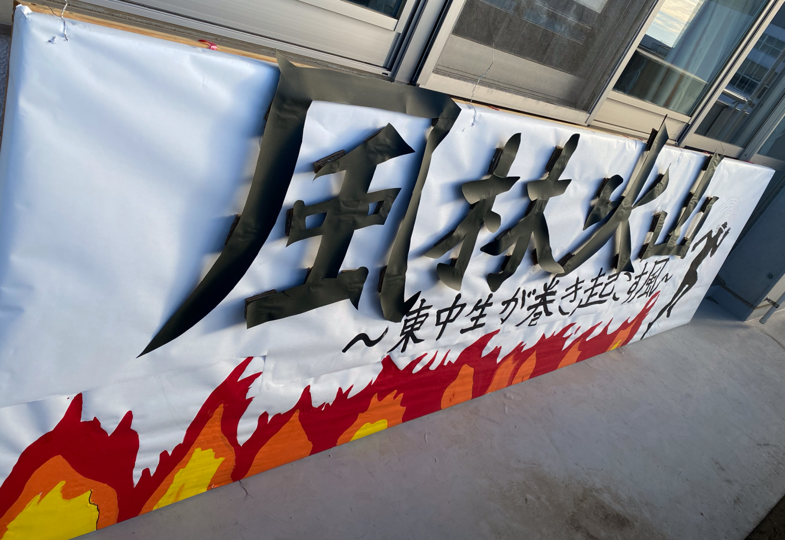 また,応援団の迫力ある応援も東中の伝統となっています。全校生徒が一丸となったすばらしい壮行式となりました。