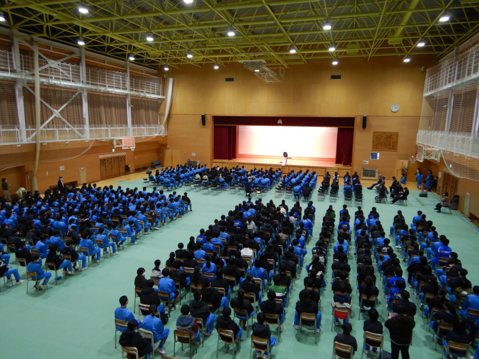 集会で校長からは,『最後に,皆さんに約束してほしいことがあります。それは,「命を大切にする」ということです。冬休みは開放的になる一方で,生活のリズムが崩れたり,思わぬ事故に巻き込まれたりしやすい時期でもあります。1月8日,皆さんの元気な笑顔に会えることが,私にとって,そして先生方にとって一番の願いです。自分自身を律し,命を大切にする行動を心掛けてください。新しい年,2026年が皆さんにとってすばらしい一年になることを祈念し,お話を終わります。1年間,ありがとうございました。』と話がありました。