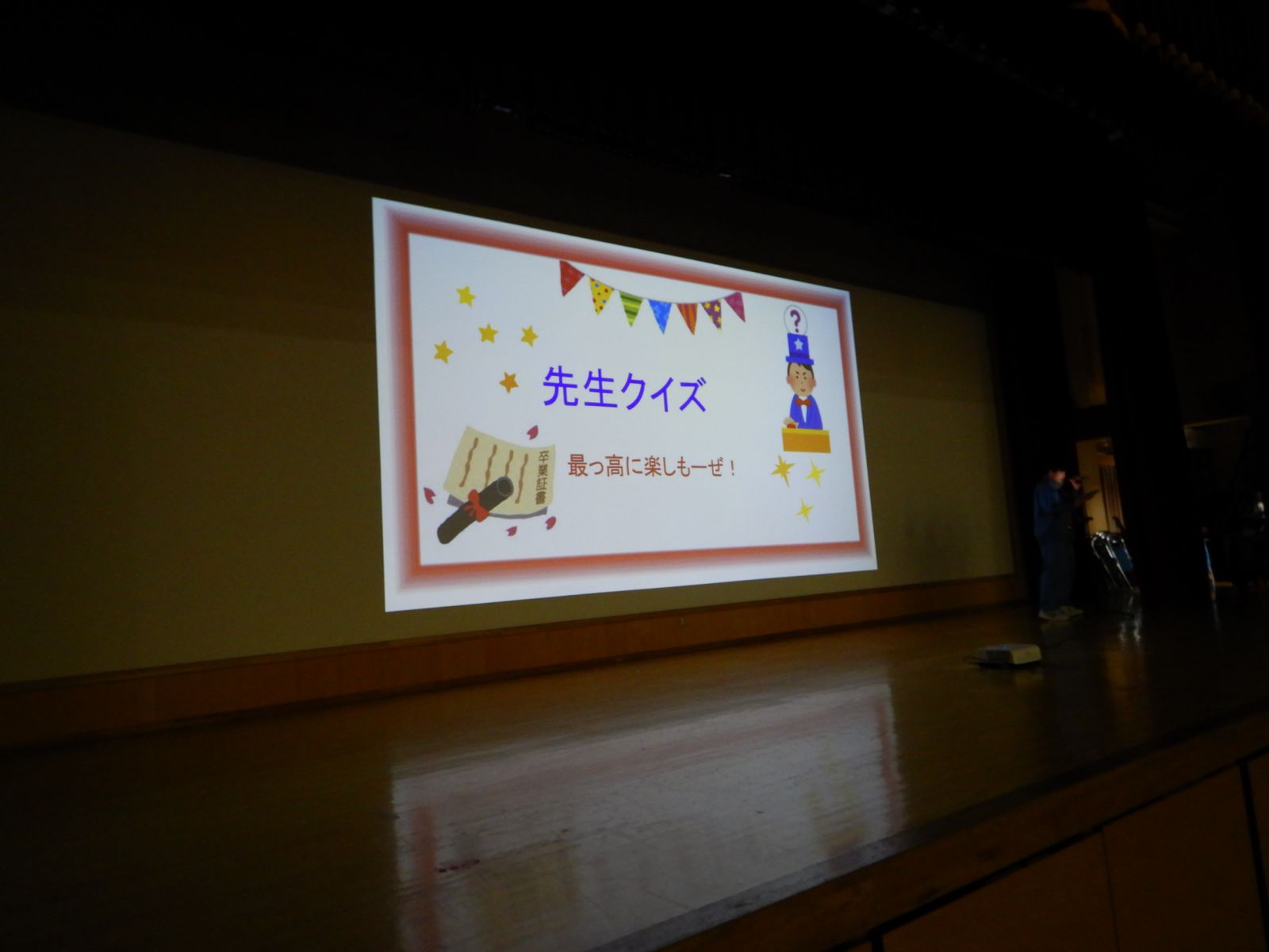 先週,26日(木)には生徒会執行部が企画し3年生を送る会を実施しました。思い出のスライドショー,先生方クイズや各部活動による後輩からのビデオメッセージなどに,思い出がよみがえり涙する3年生の姿も見られました・・・。