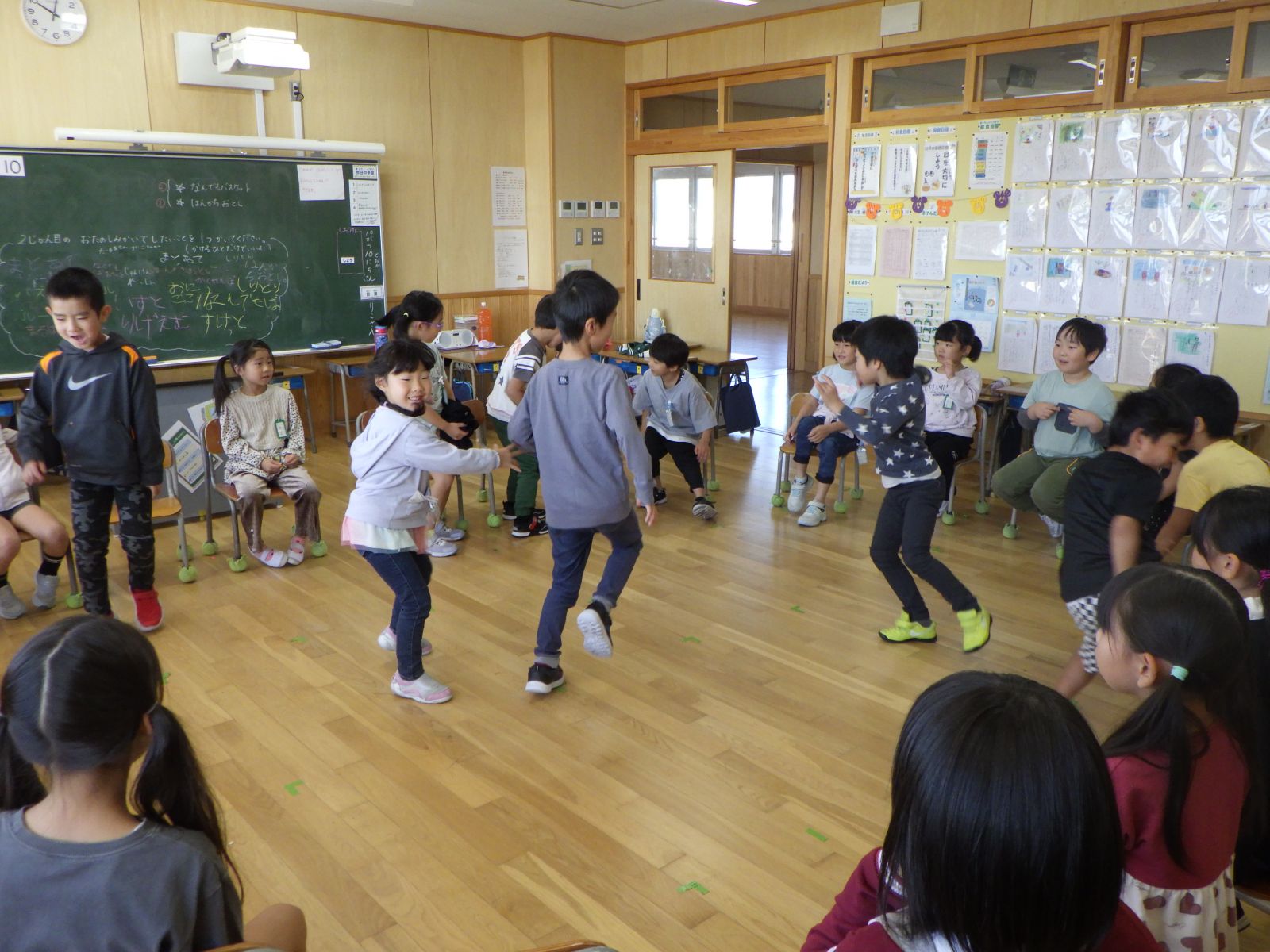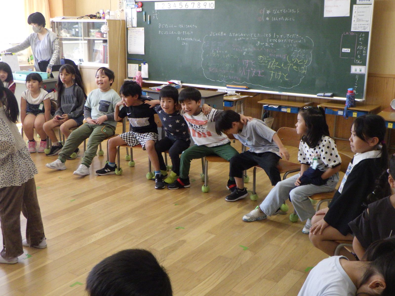 終業式の後、1年生はお楽しみタイム。フルーツバスケットをして楽しみました。