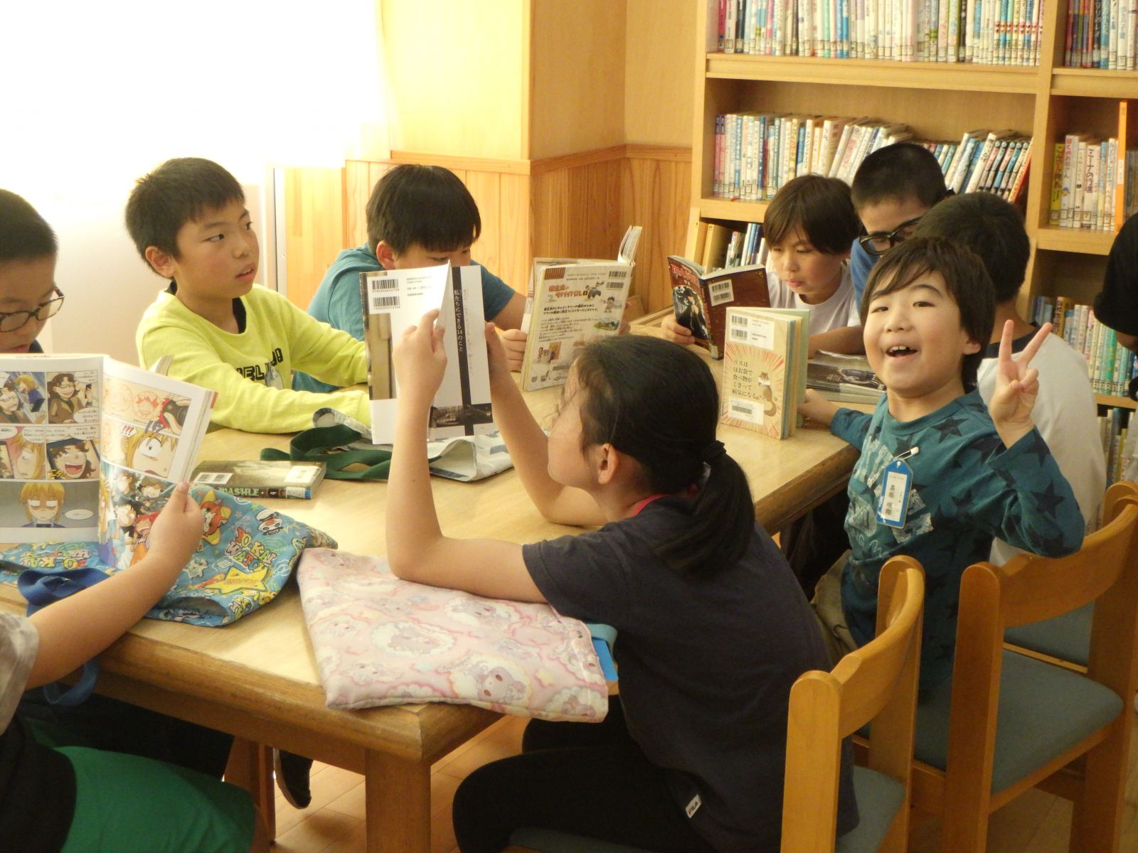 3・4年生は図書室で本を選び、読書を楽しみました。