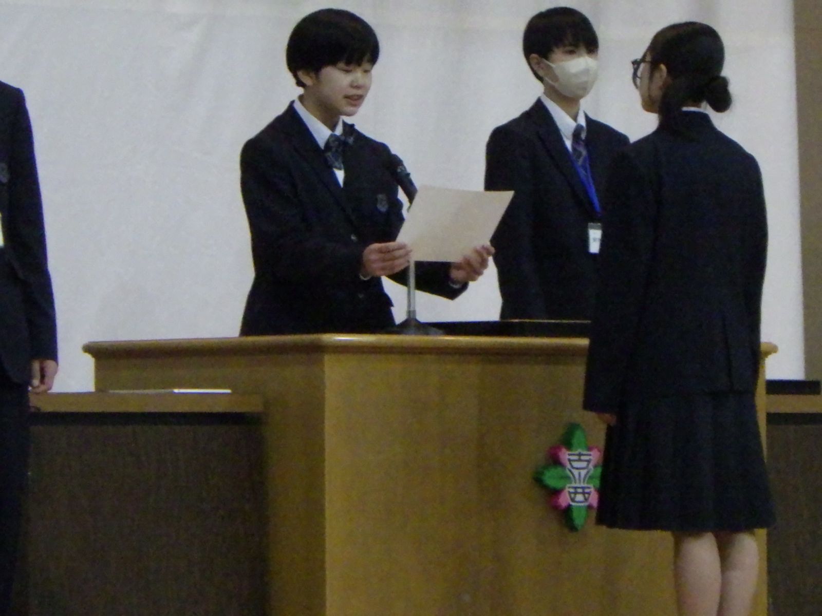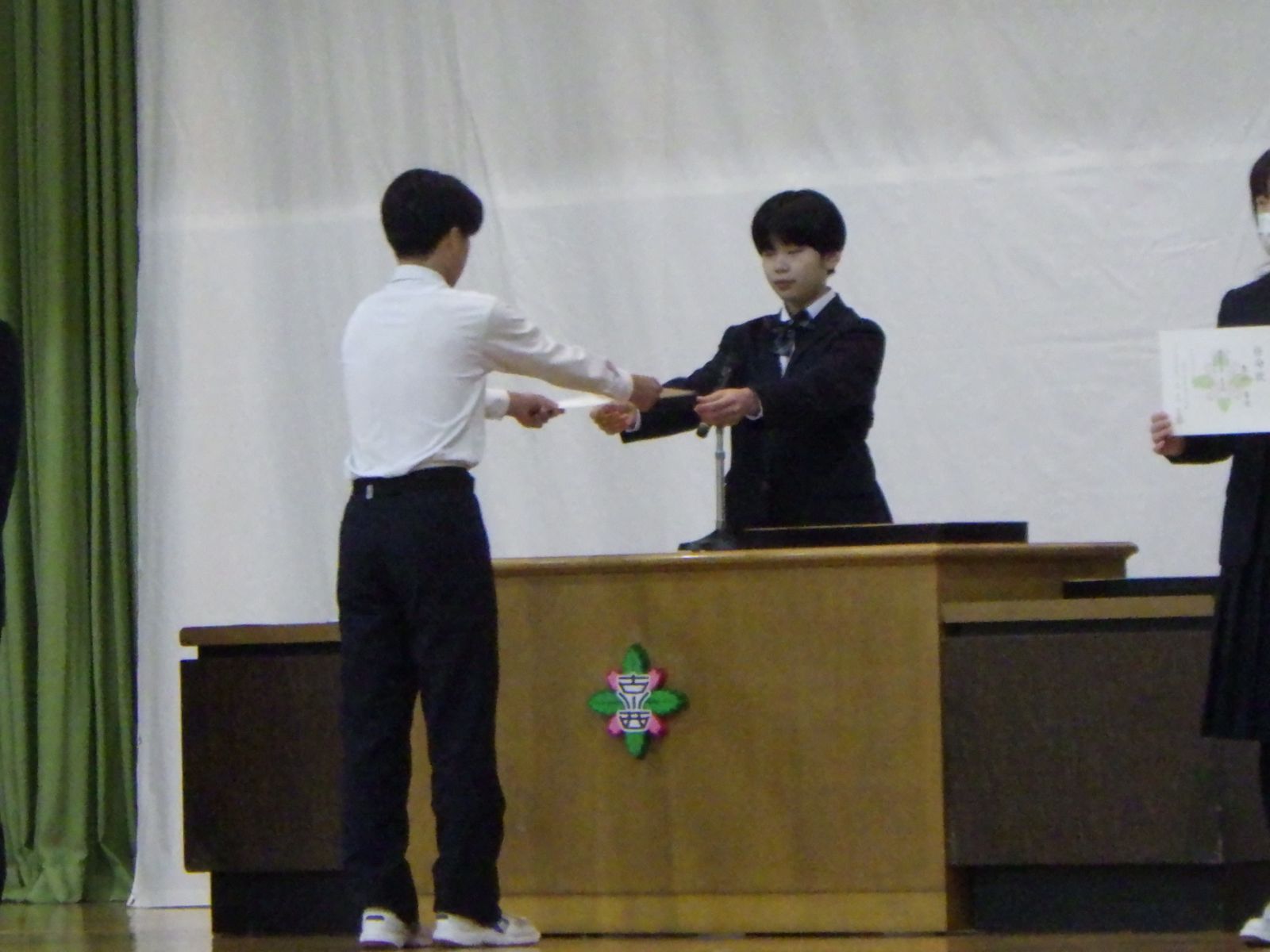 学年委員長、専門委員長に、児童生徒会代表から任命状が手渡されました。