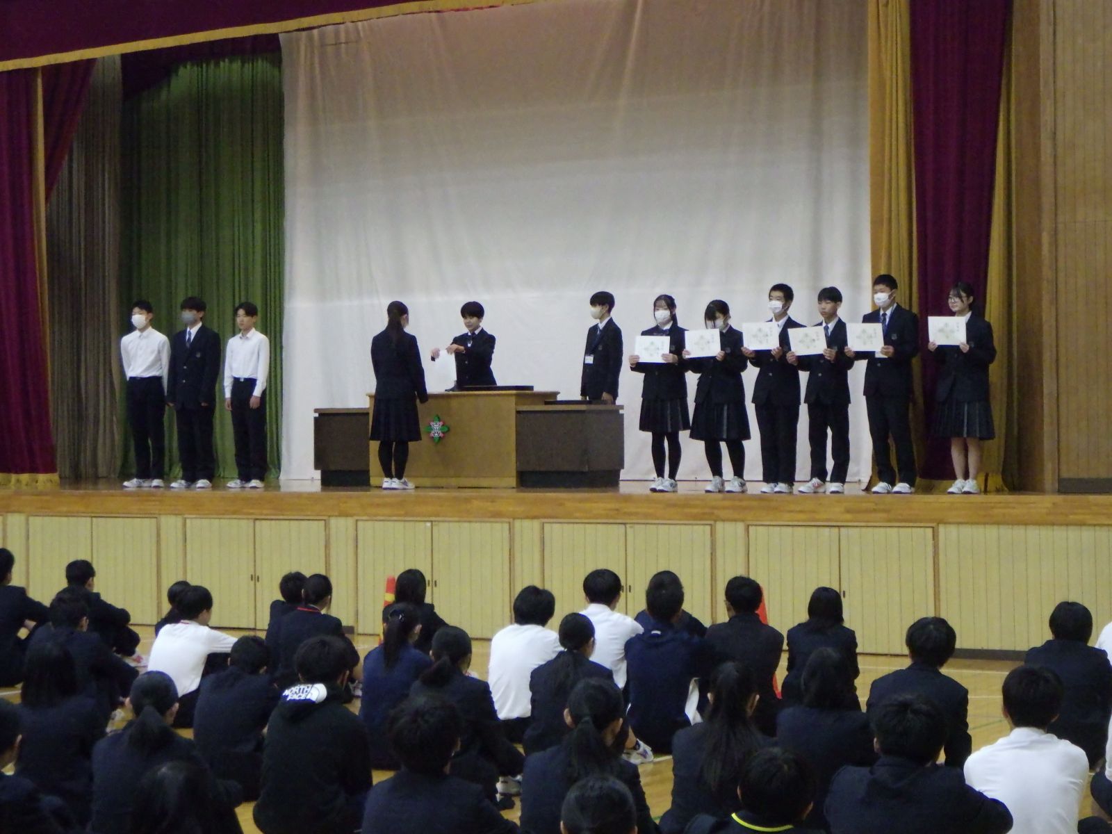 業前の時間に、5~9年生が専門委員長引継ぎ式を行いました。