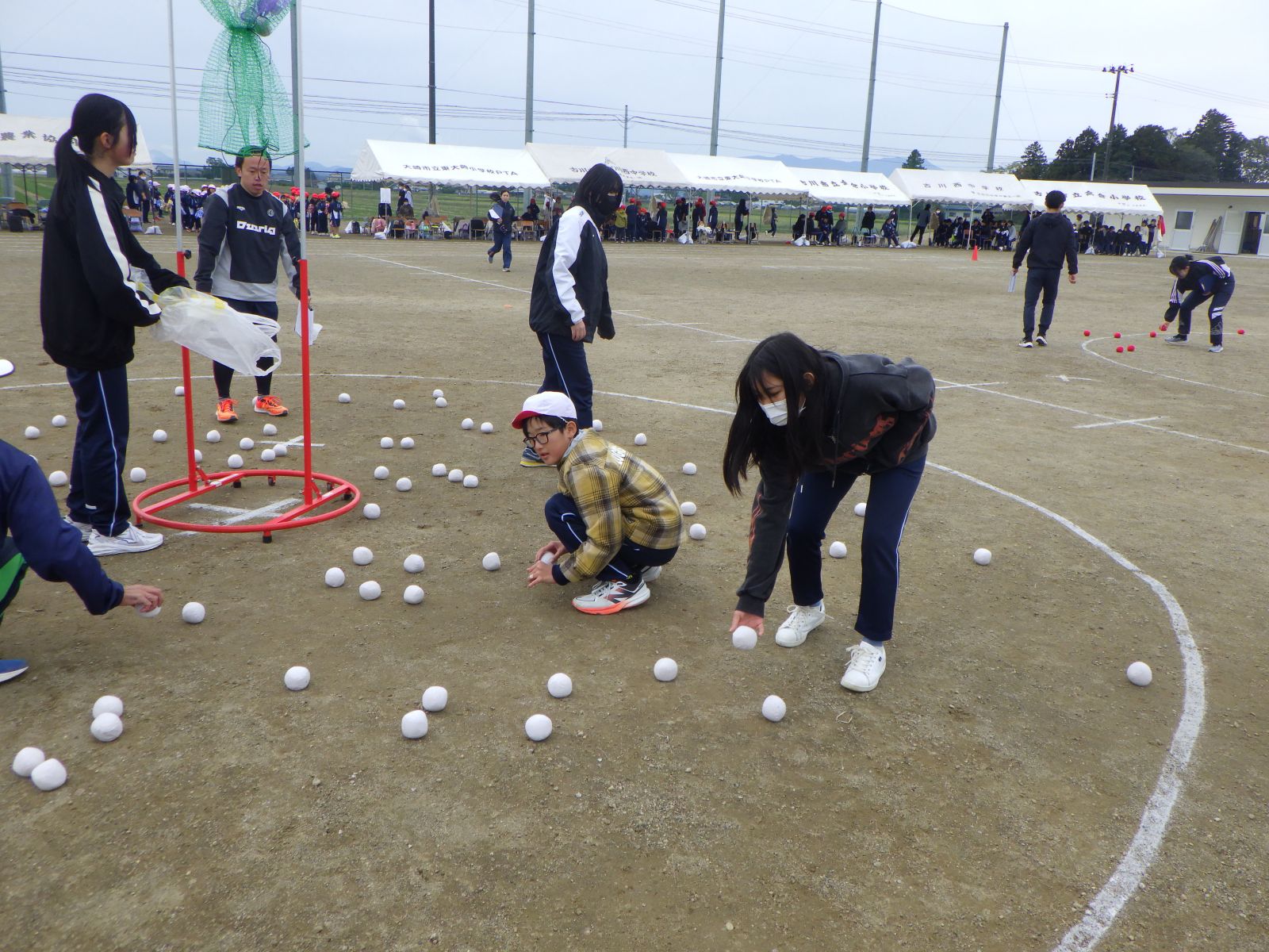 1・2年生の玉入れの準備を、5~9年生の準備係が一生懸命行います。