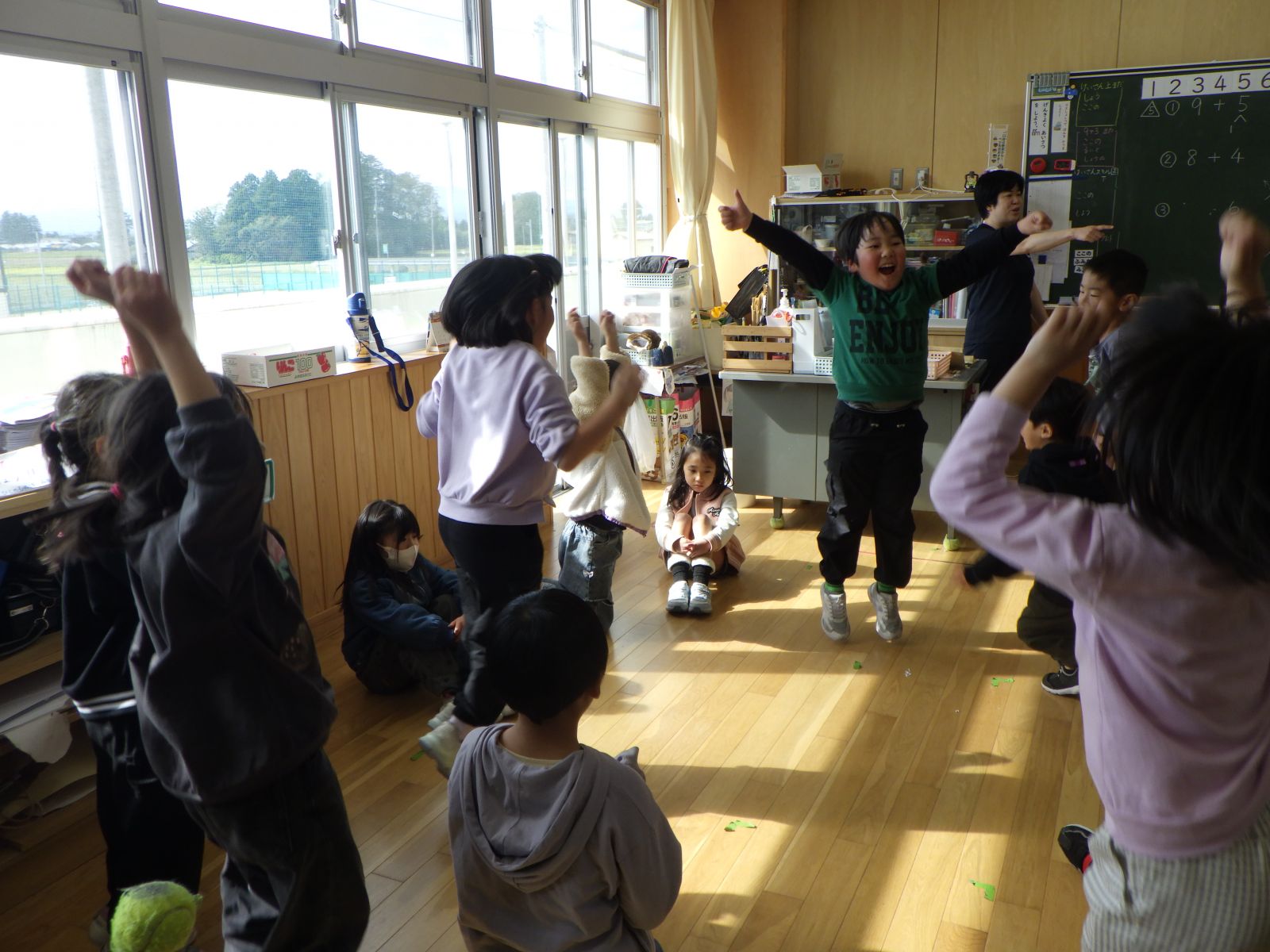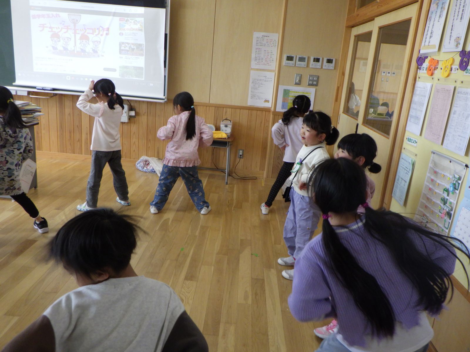 1年生は教室で、ダンスの練習、勝った時の喜び方の練習をしました。