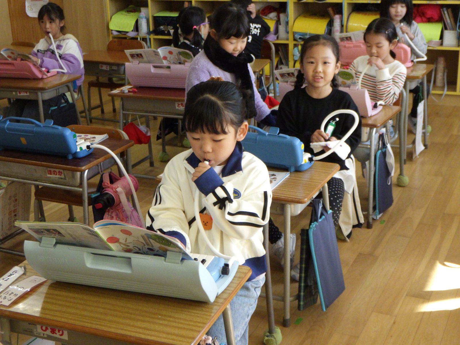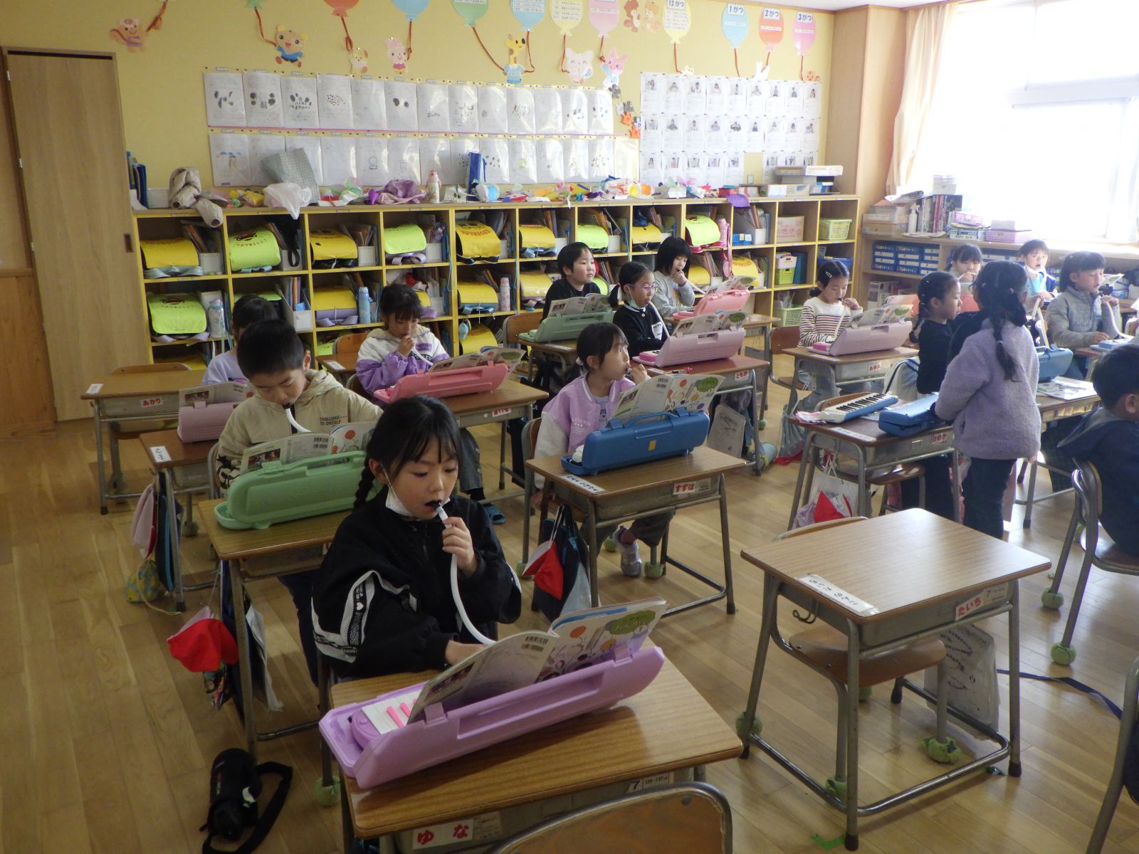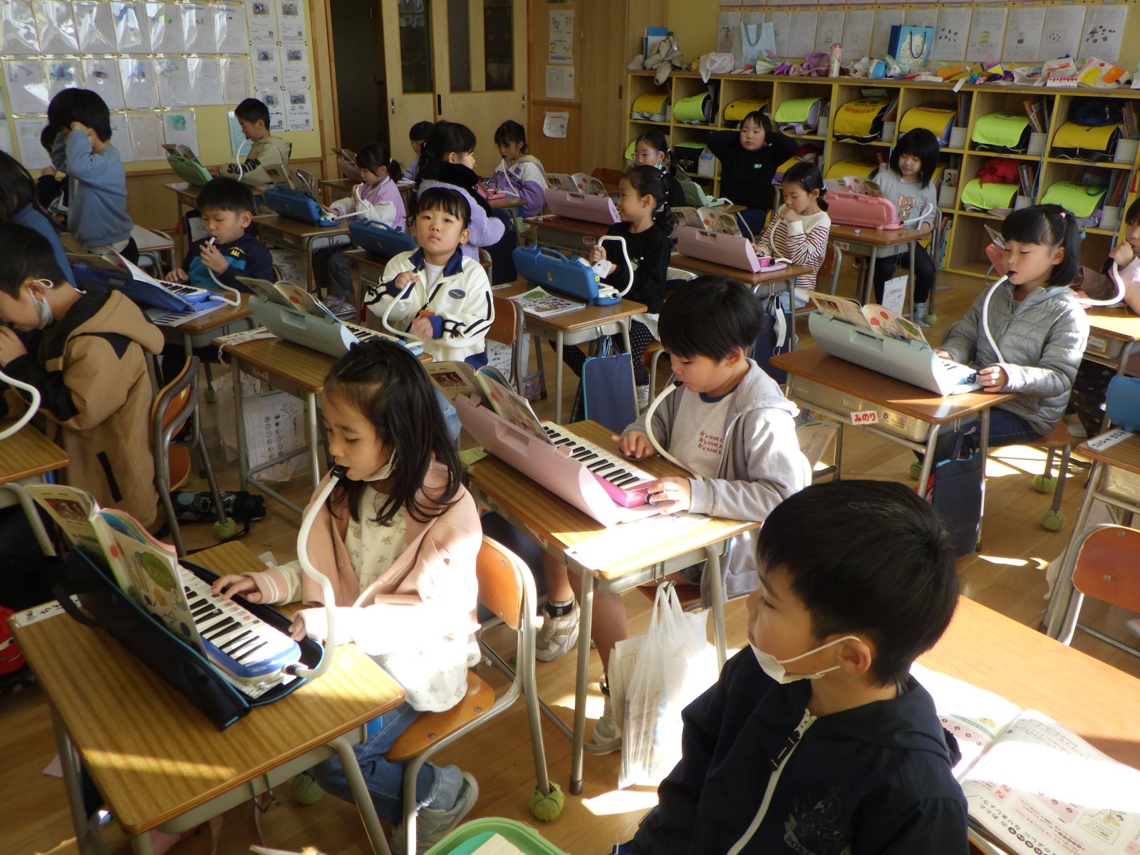 1年生は鍵盤ハーモニカの練習を頑張っていました。