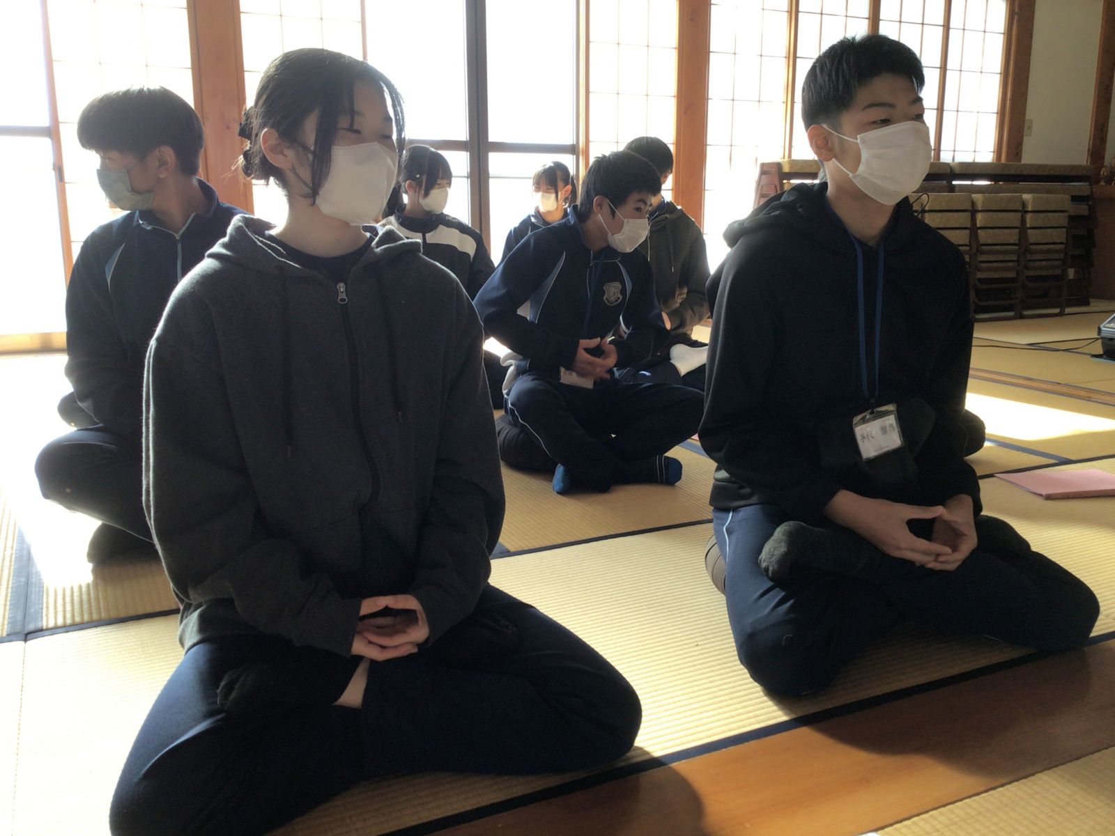 厳かな雰囲気の中、座禅をとおして心を落ち着けました。