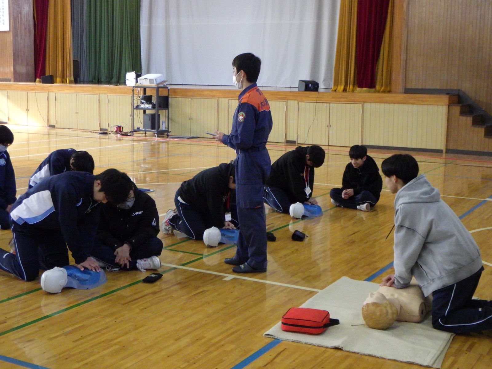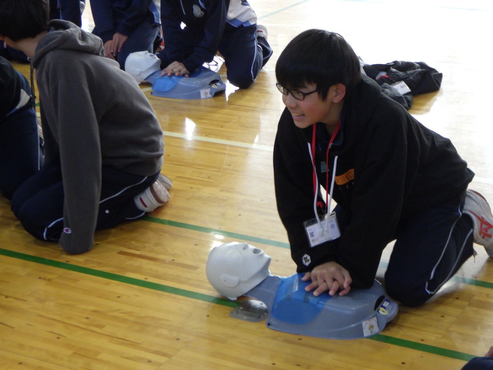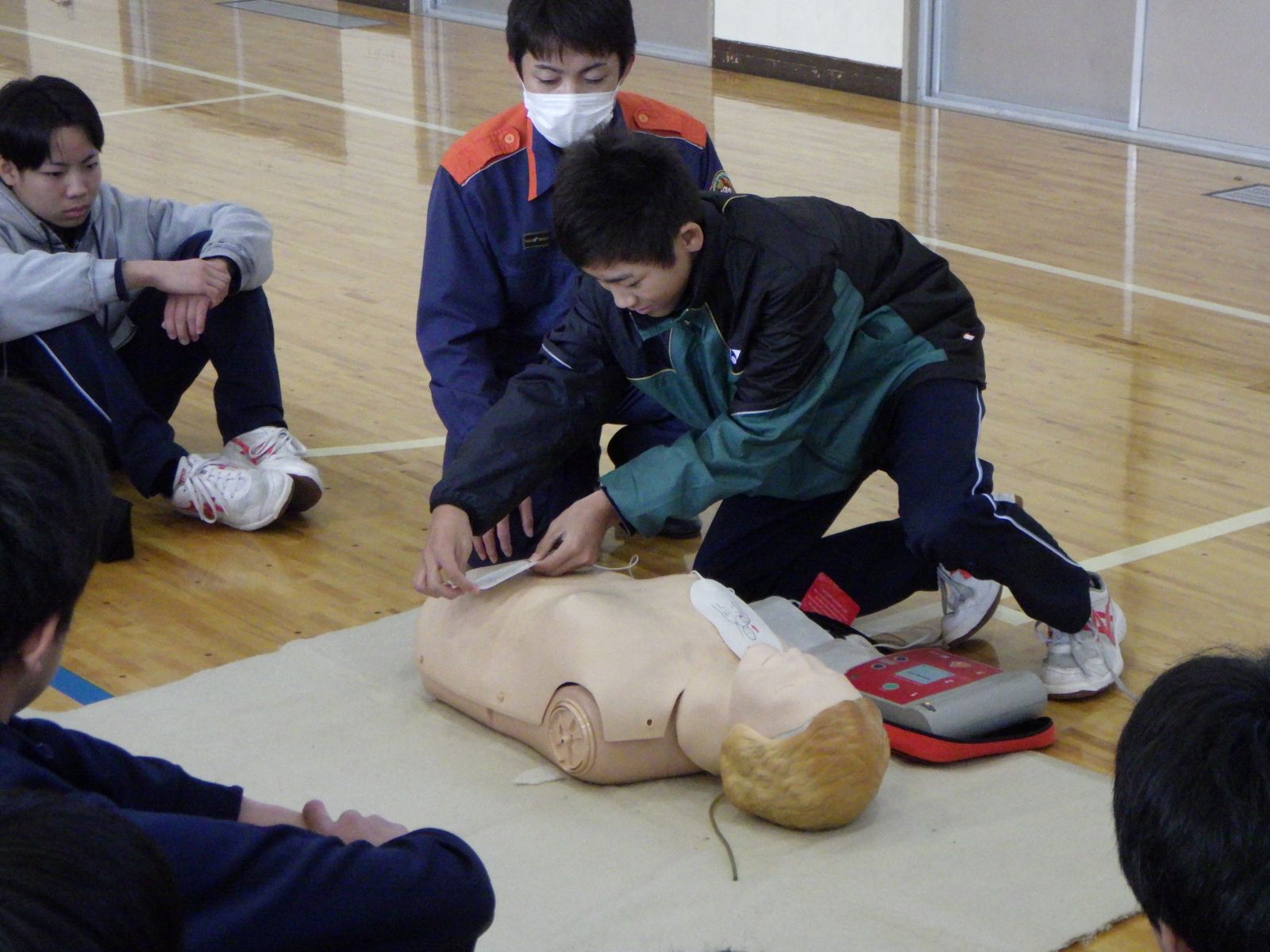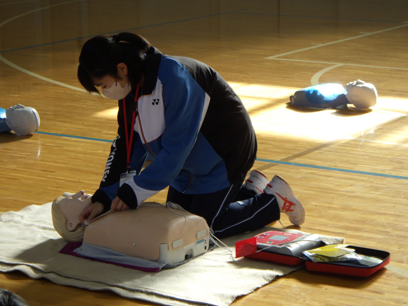 最後に、倒れた人を発見してから、心臓マッサージ、AEDの使用までの練習をしました。