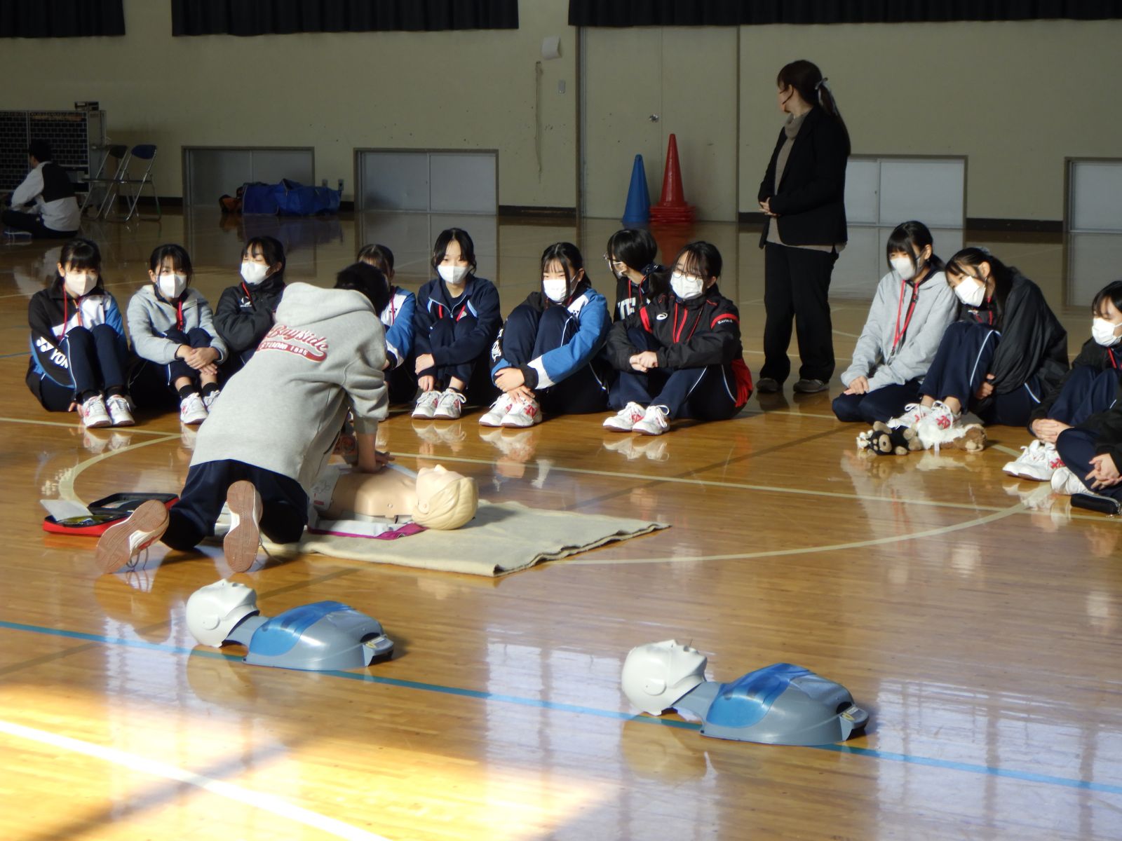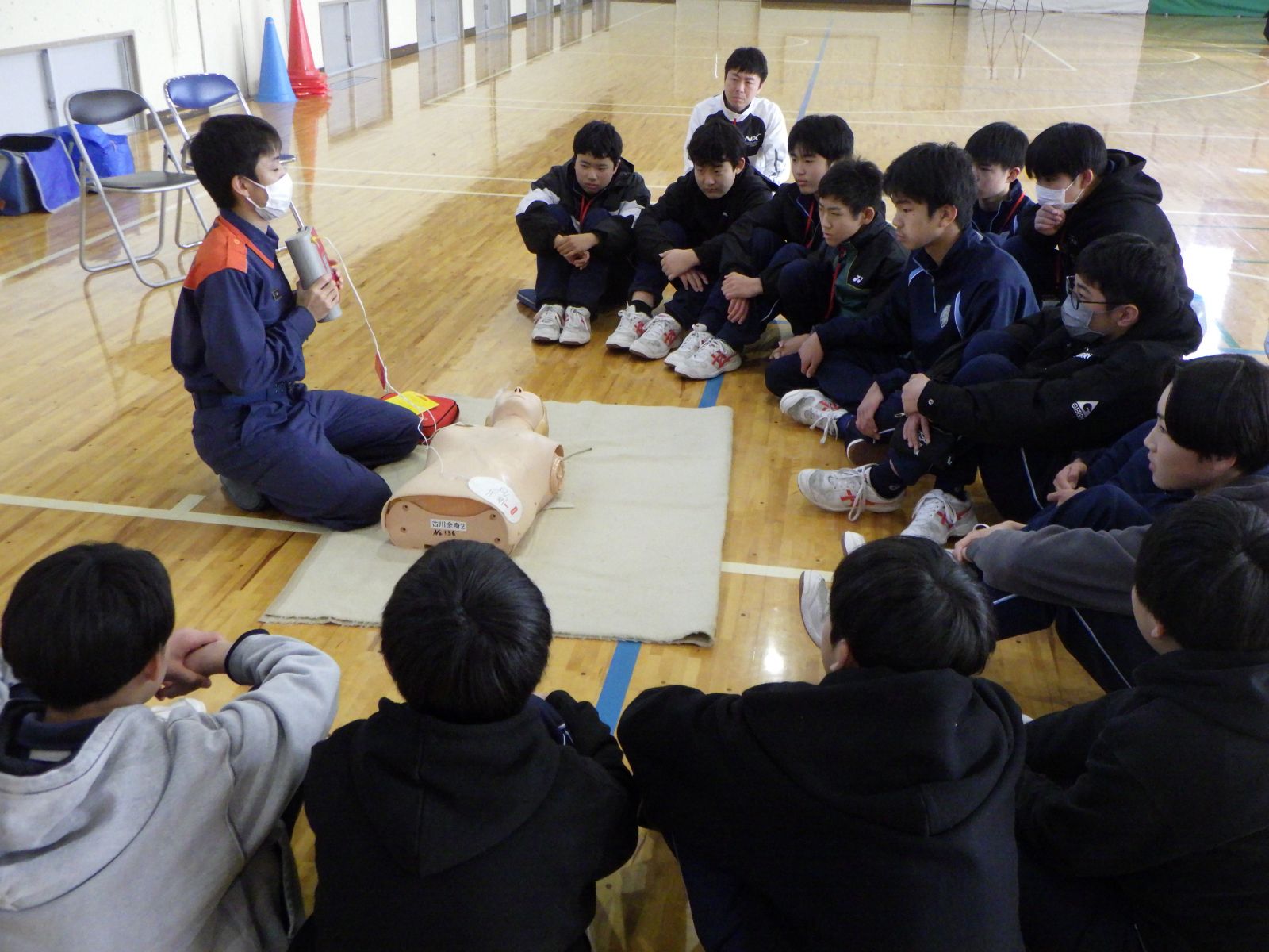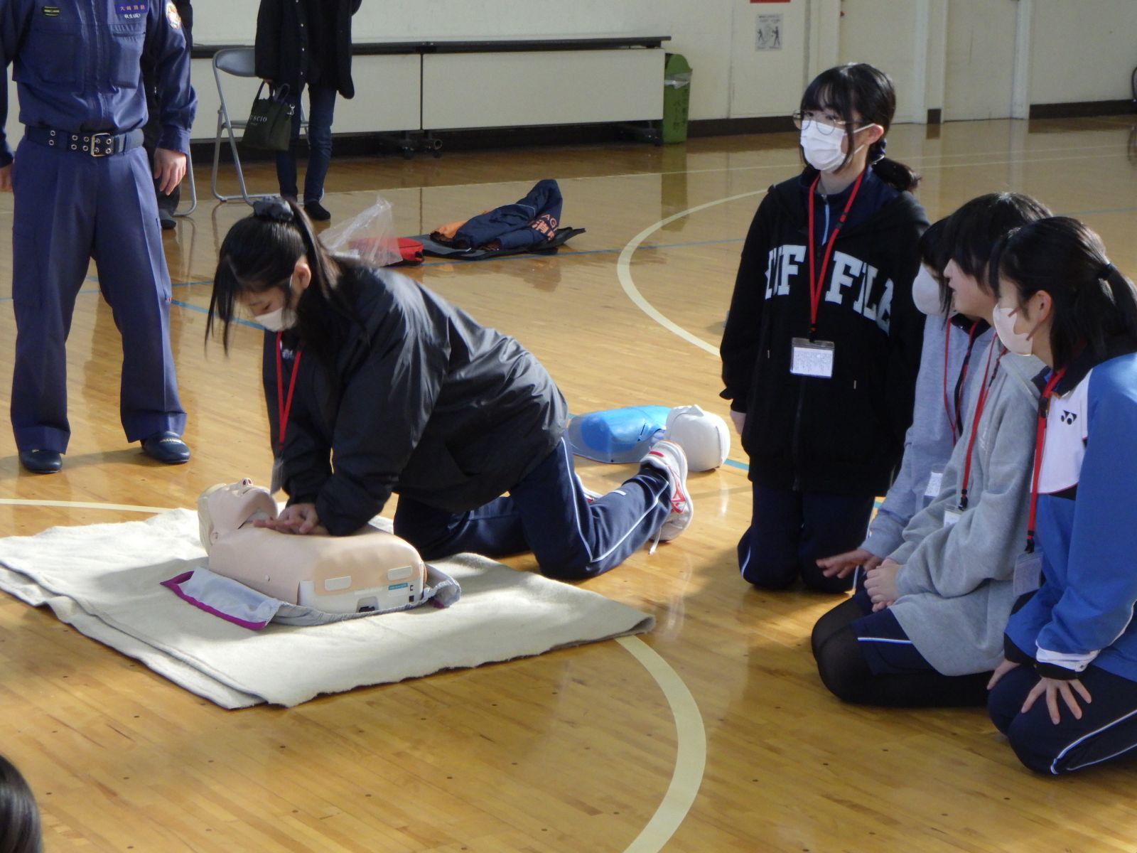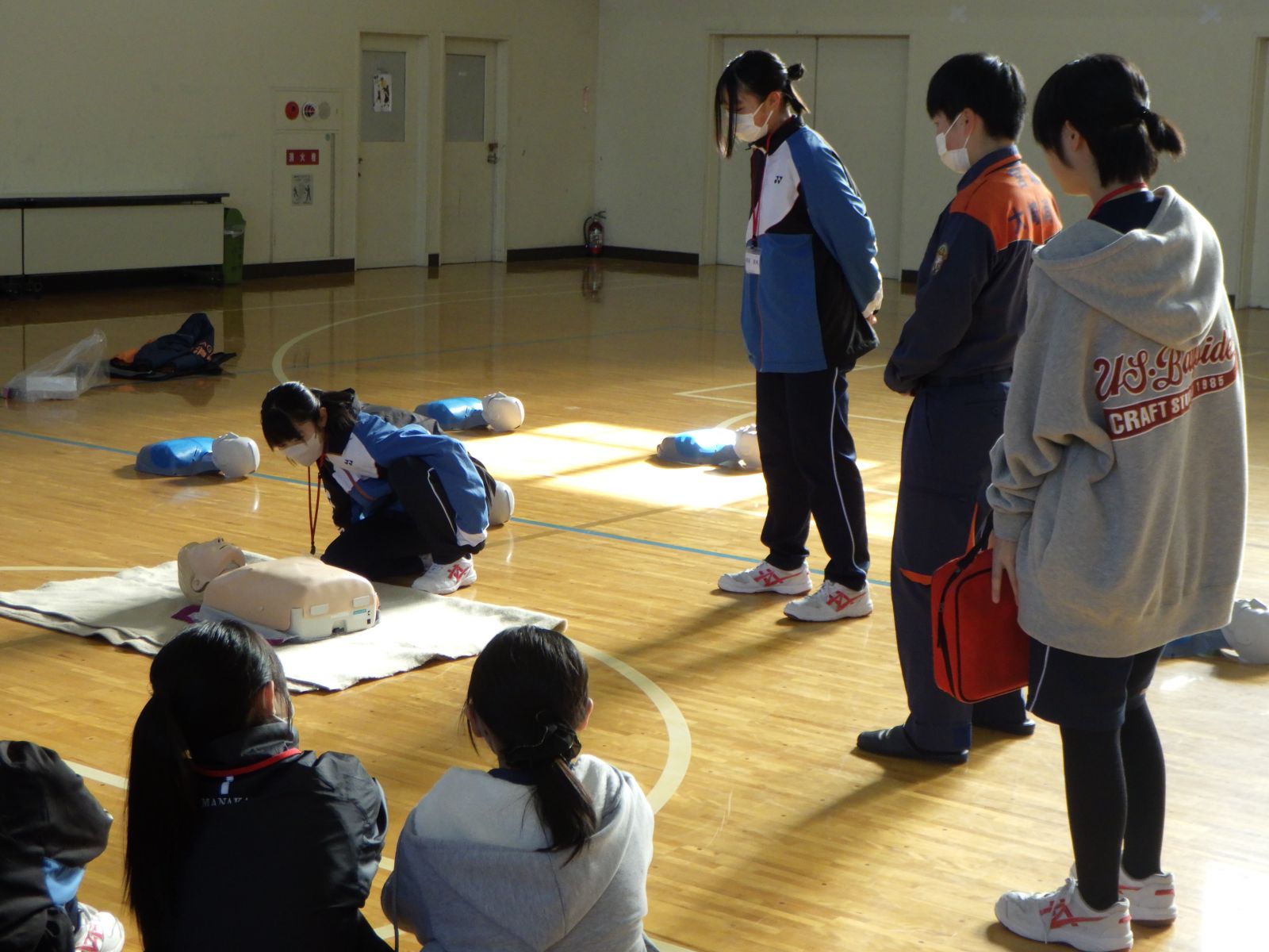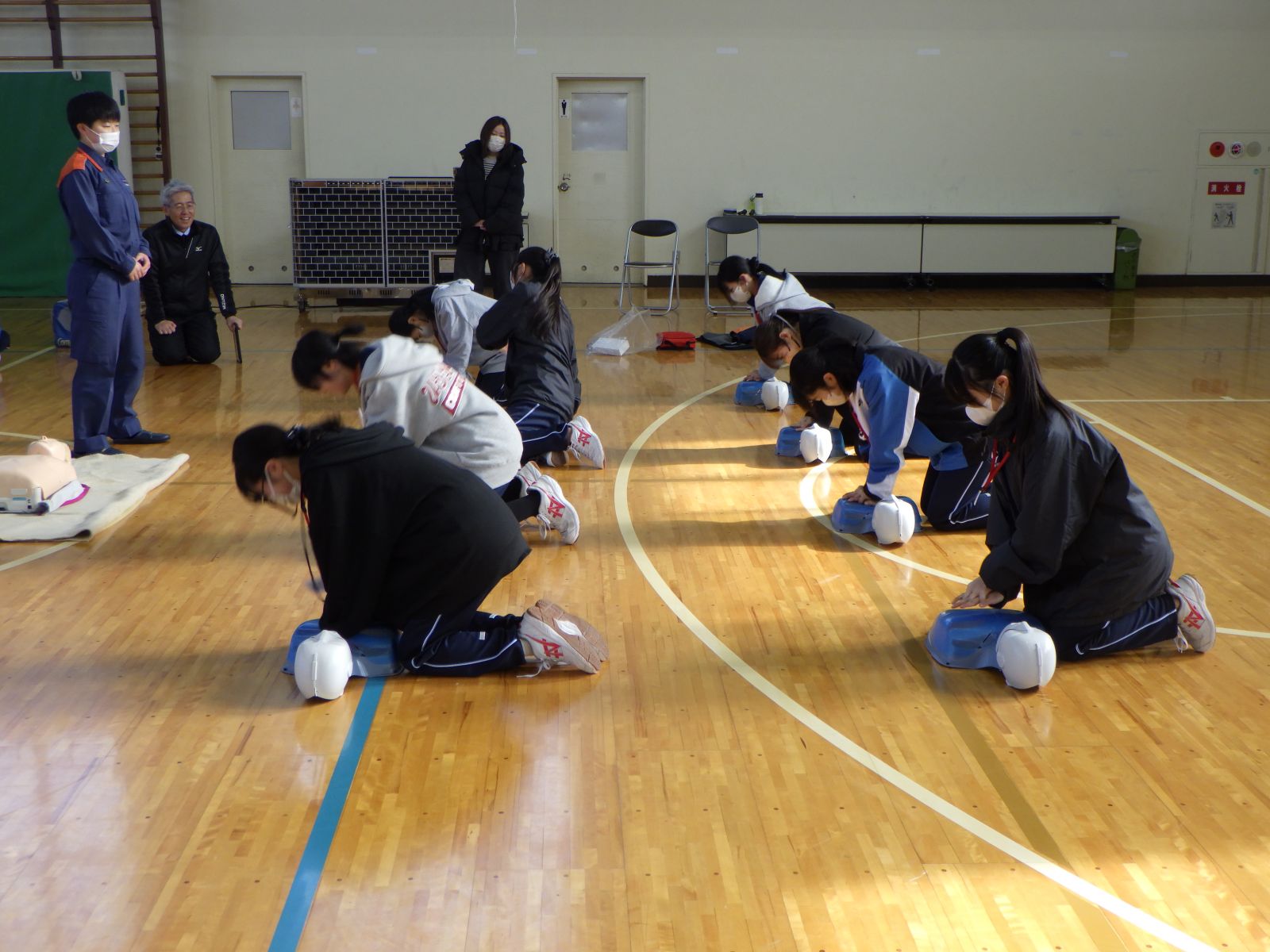 最後に、倒れた人を発見してから、心臓マッサージ、AEDの使用までの練習をしました。
