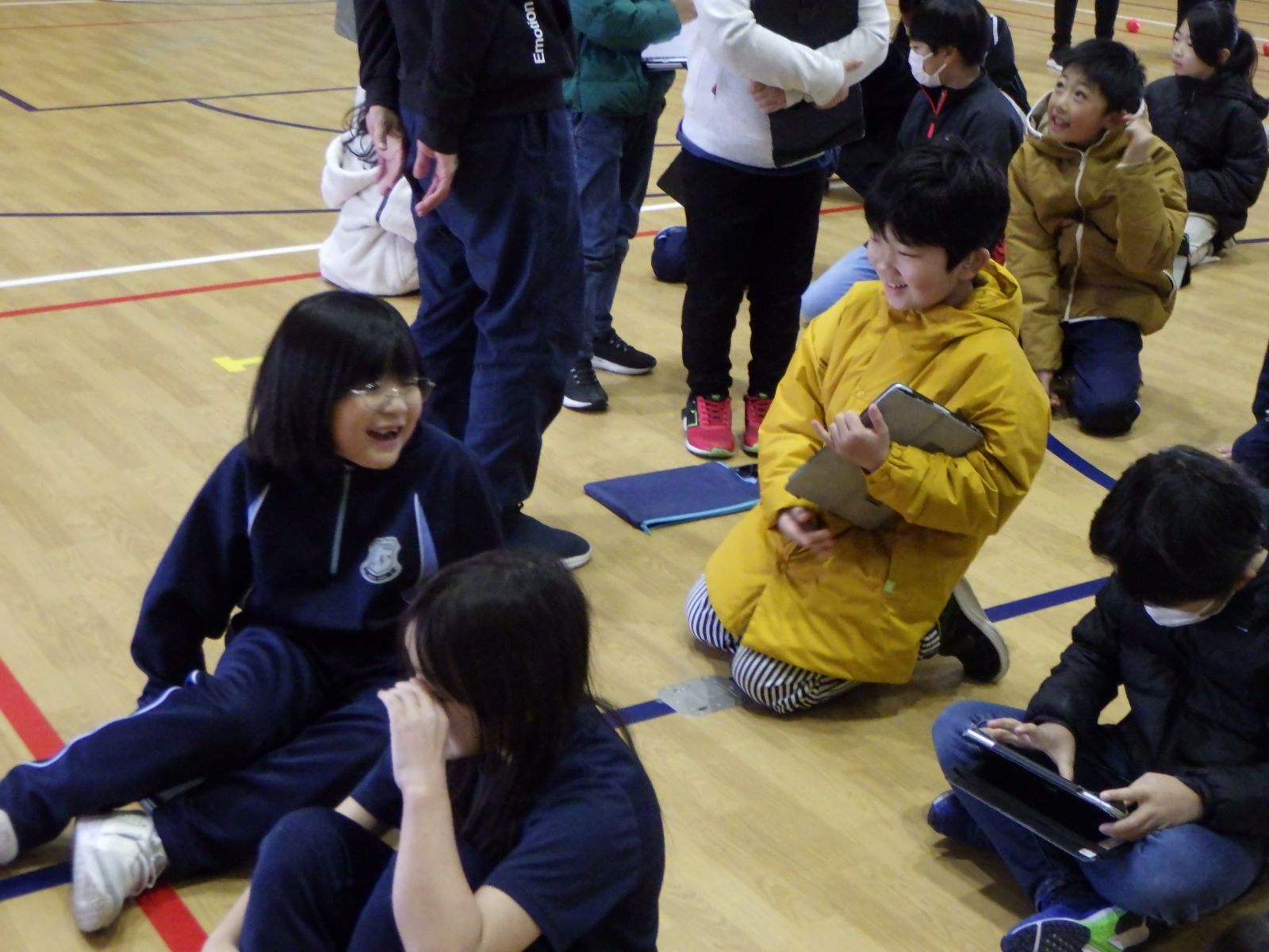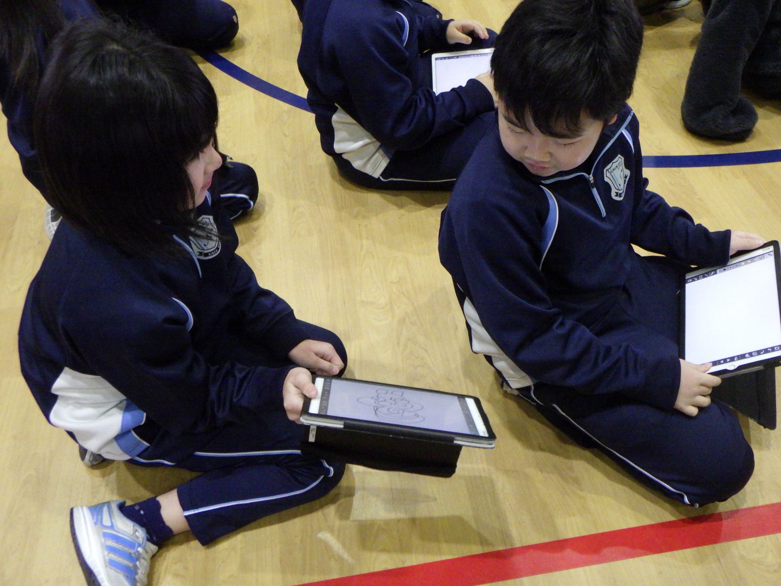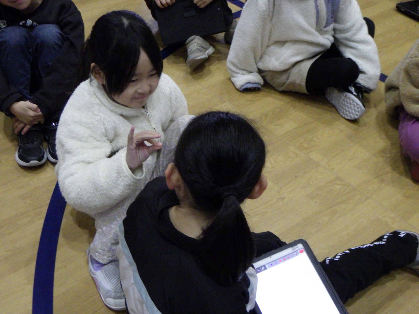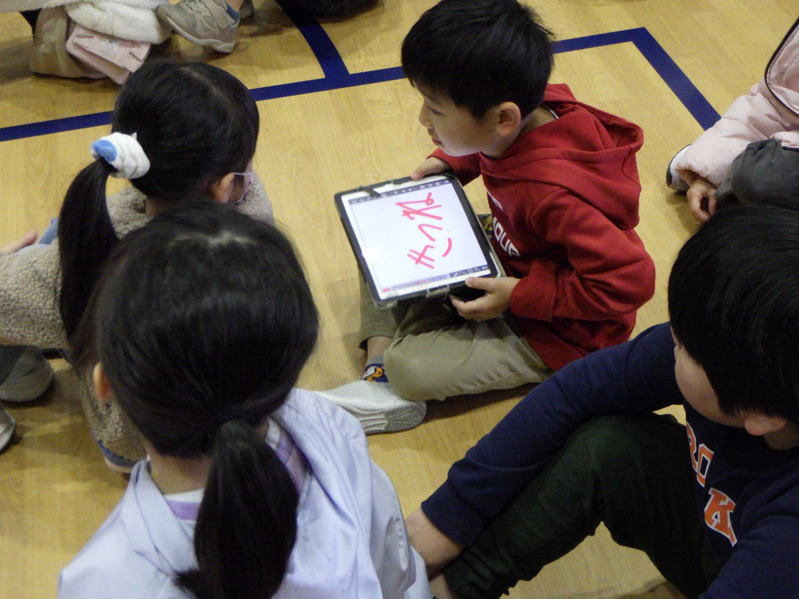 背中に書いたり、タブレットに書いたり、動きをまねたり、絵に描いたりと、工夫して伝えました。