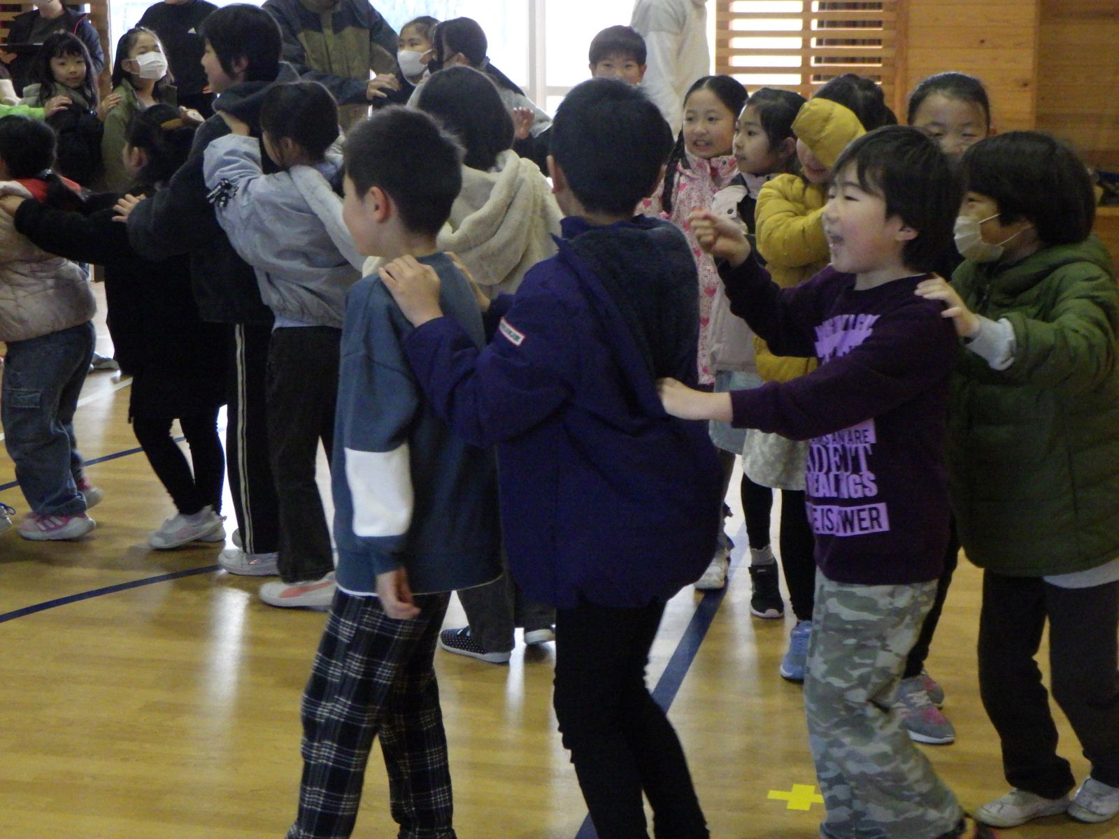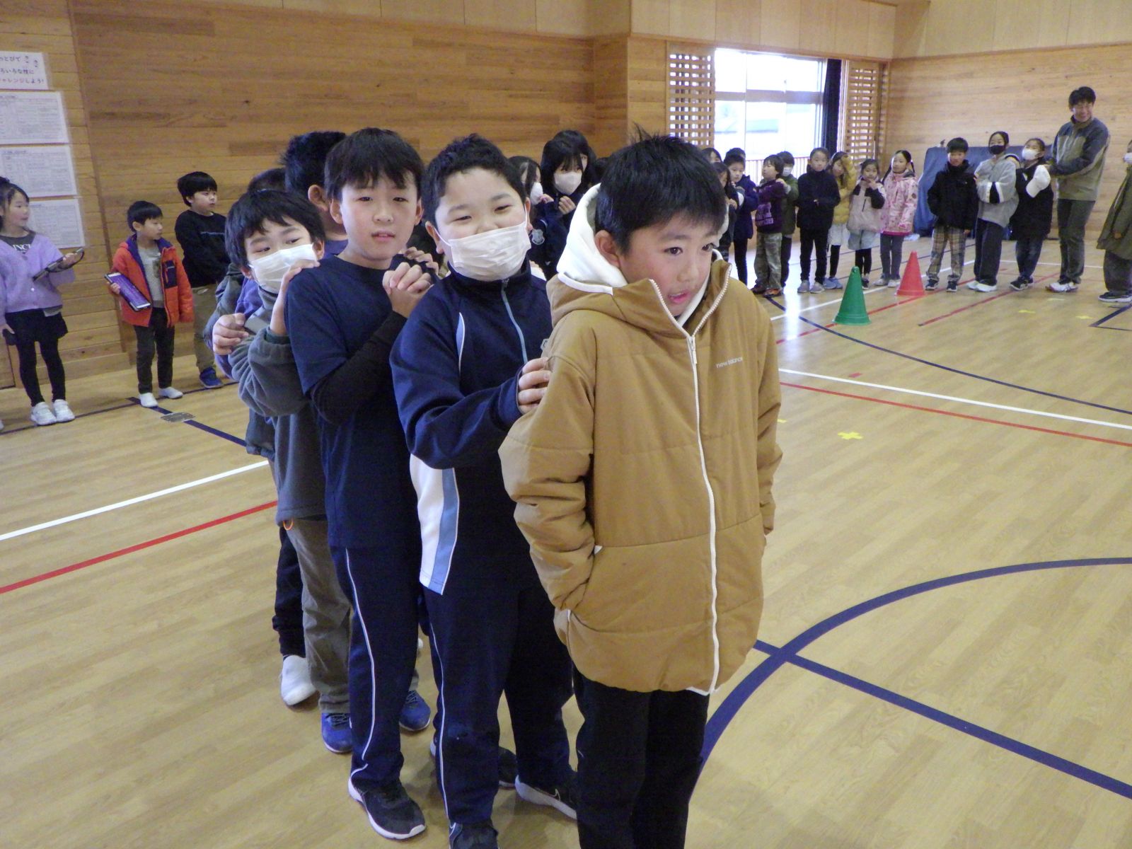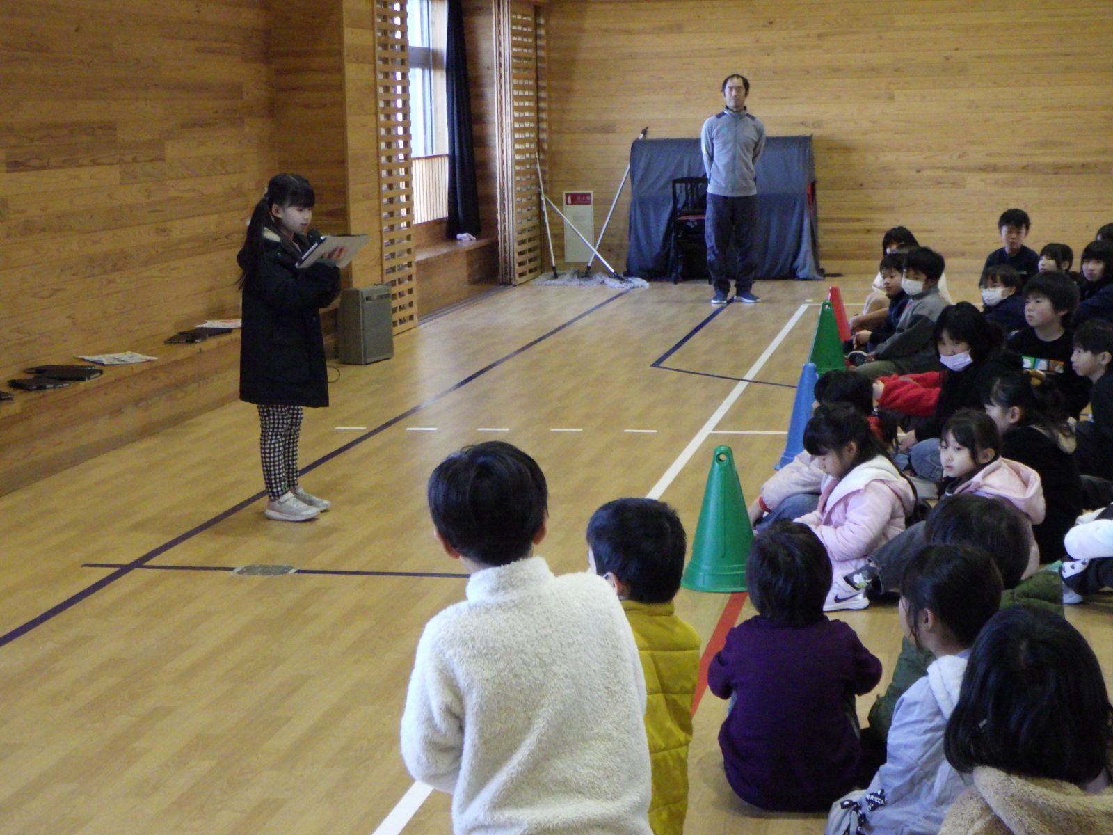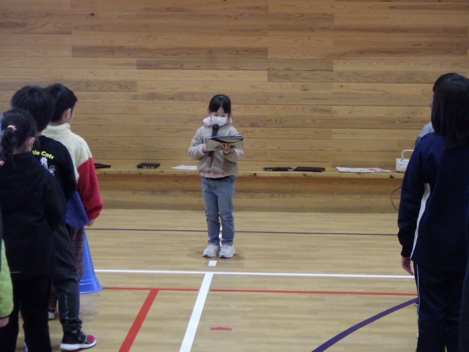 今日の児童朝会は、2年生の進行で「じゃんけん列車」をしました。