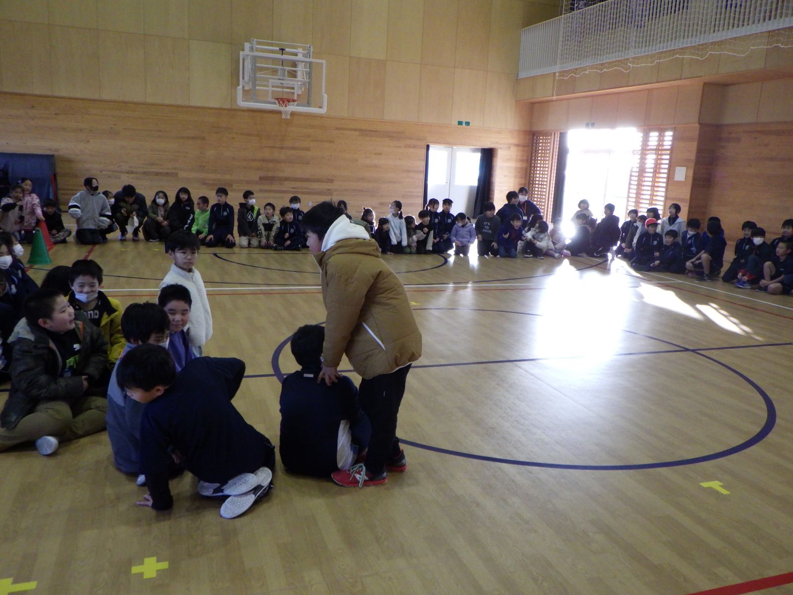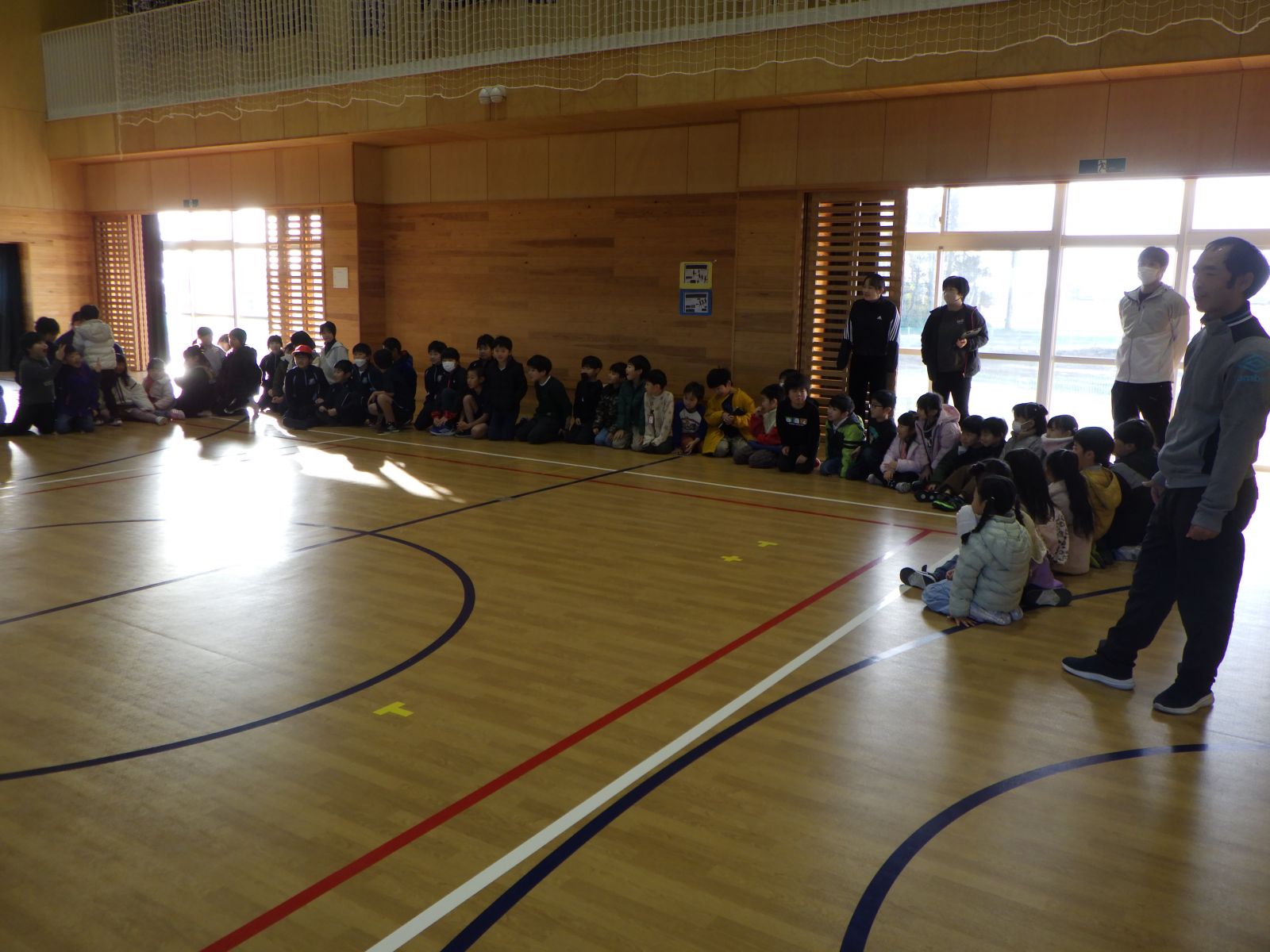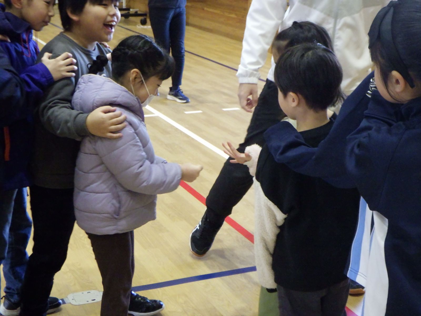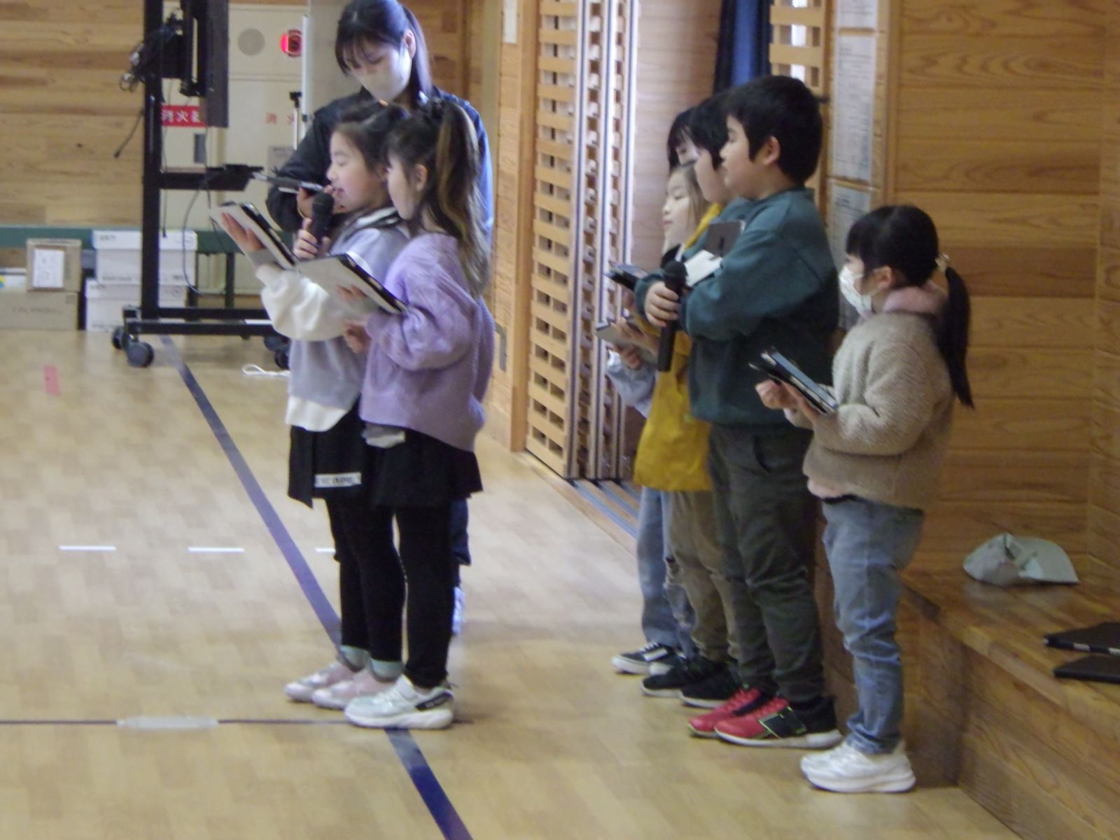 今日の児童朝会は、2年生の進行で「じゃんけん列車」をしました。