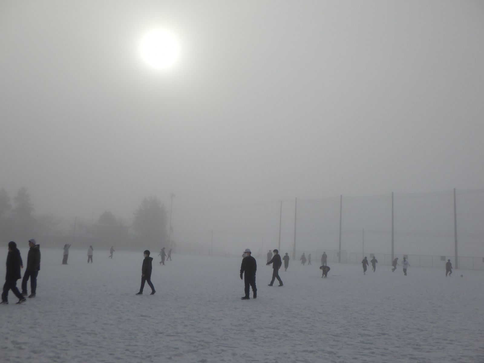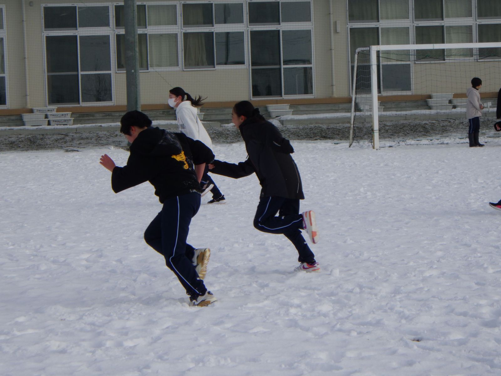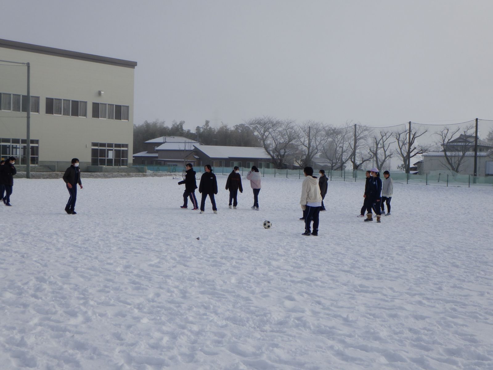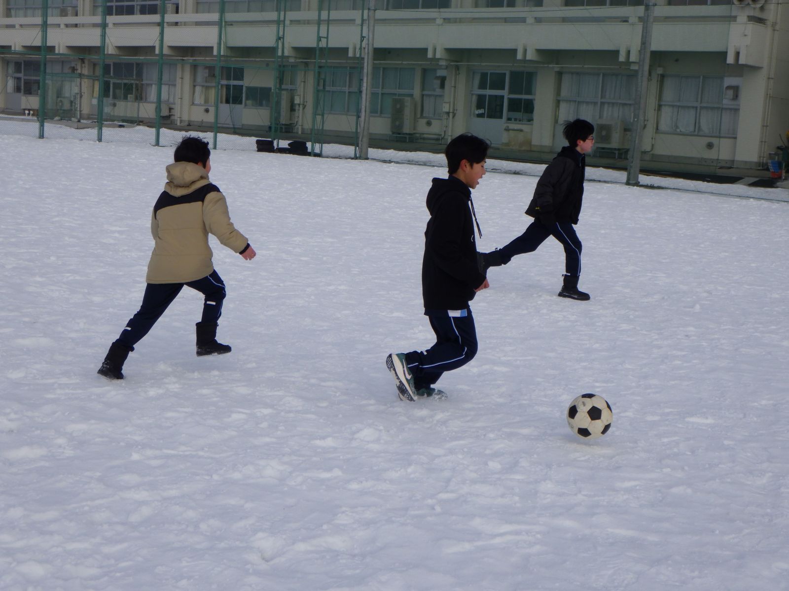 6年生は1時間目の体育で、雪上サッカーを行いました。