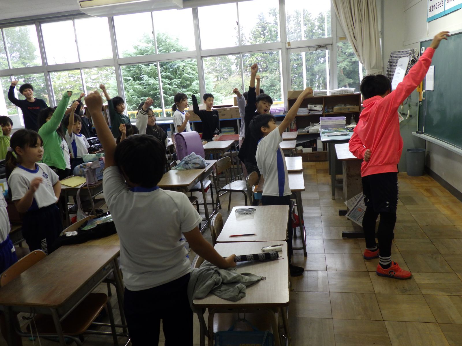 朝には応援団が各教室を回って応援の仕方を教えていました。