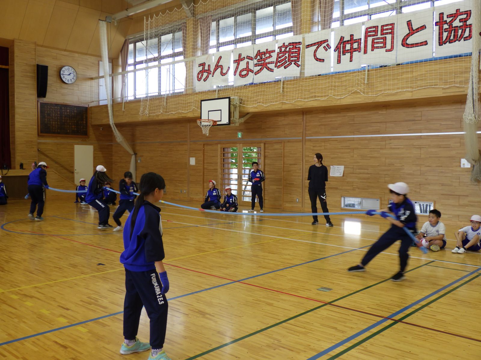 昨日の雨のために,午前中は校庭が使えず,体育館を