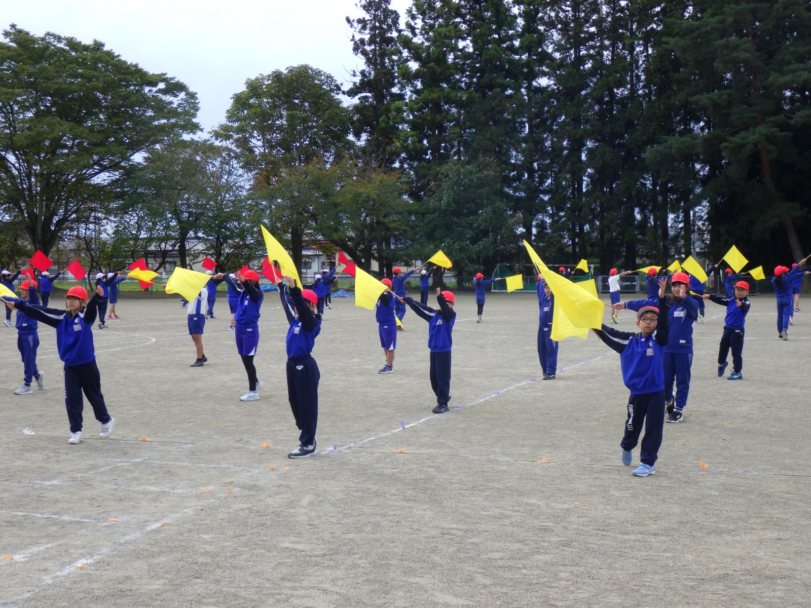 今年は,全校児童が紅白に分かれて児童席に座り,全