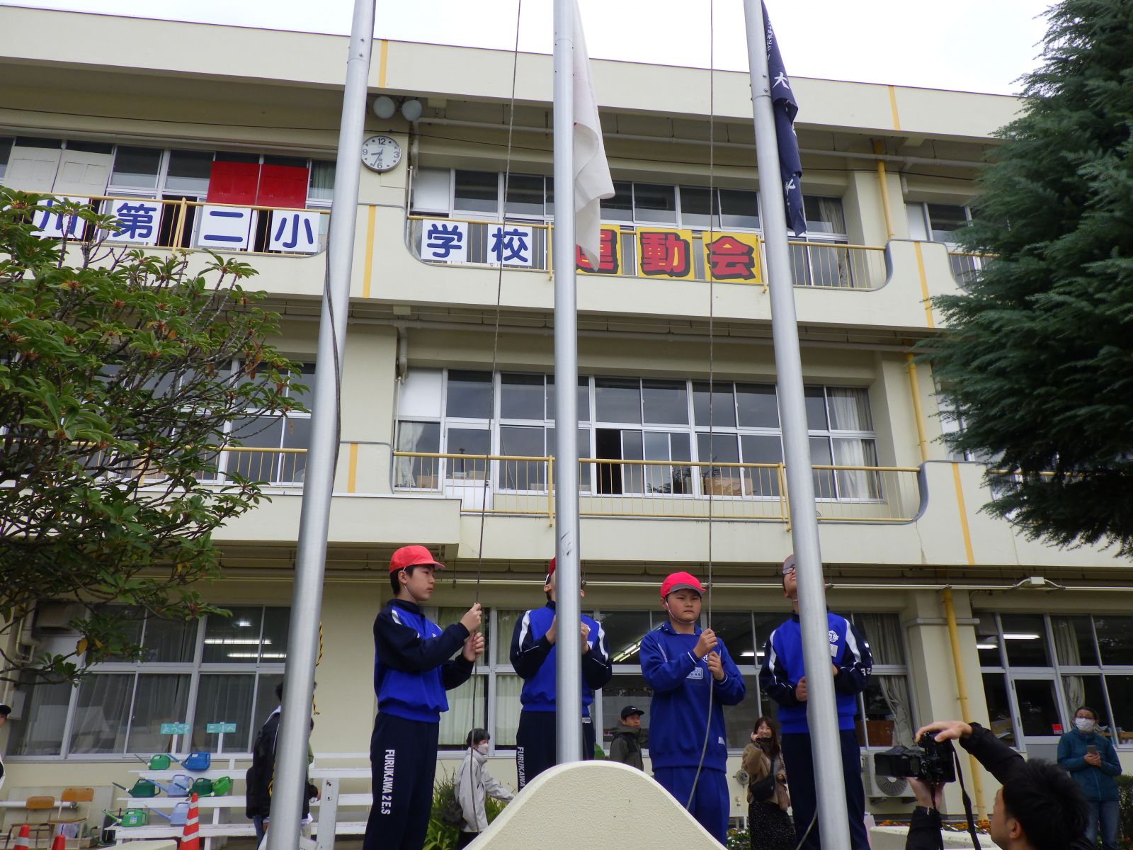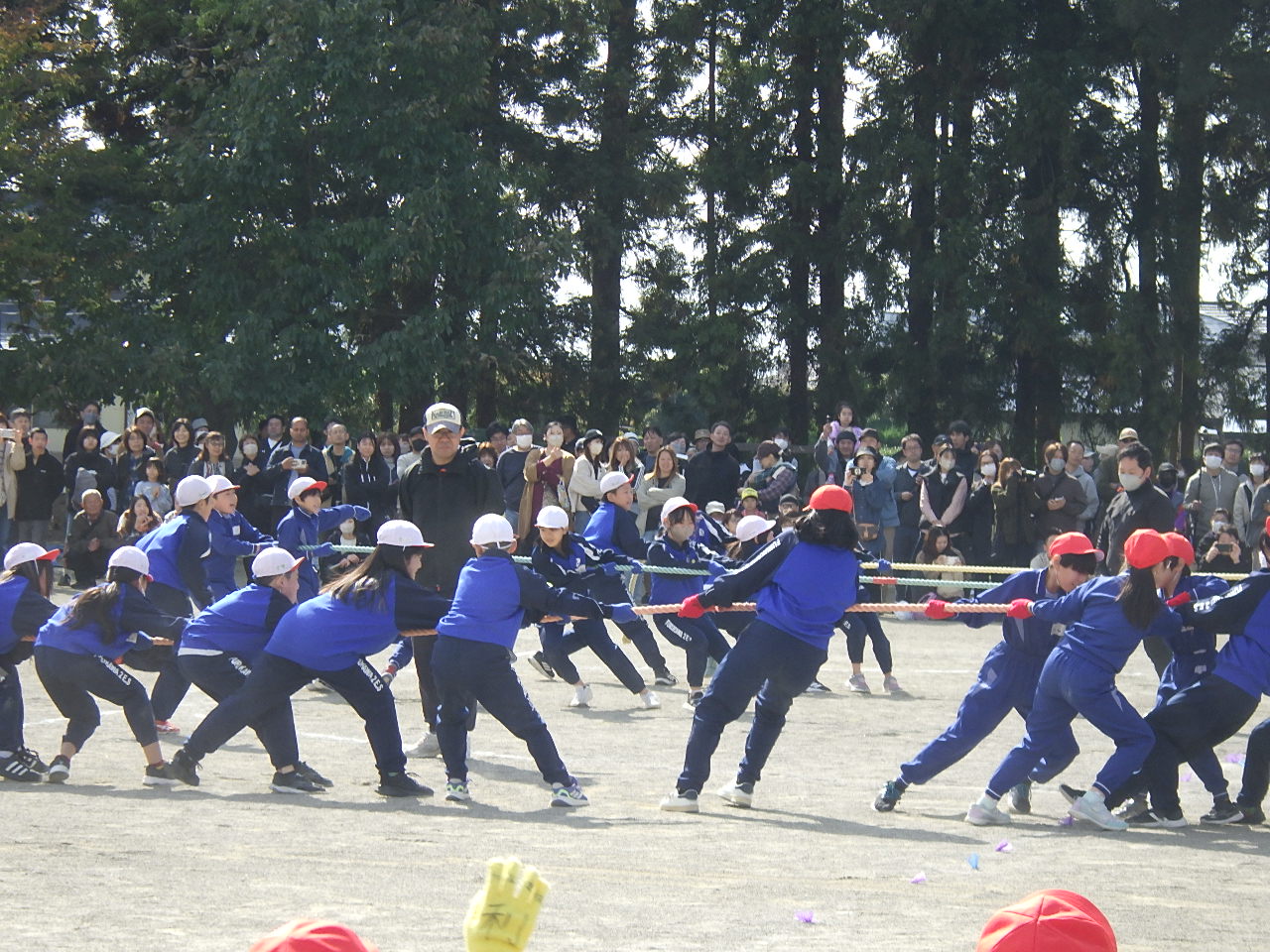 また,今年は久しぶりの紅白対抗の運動会で,応援