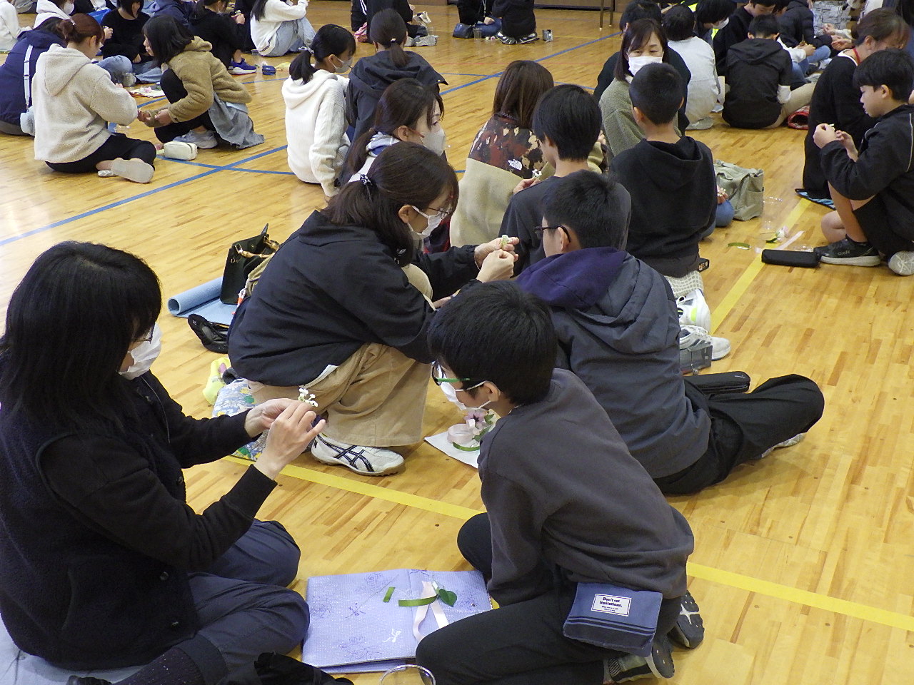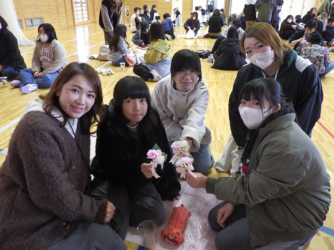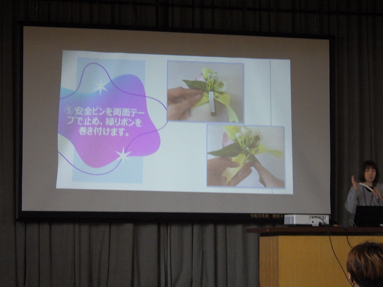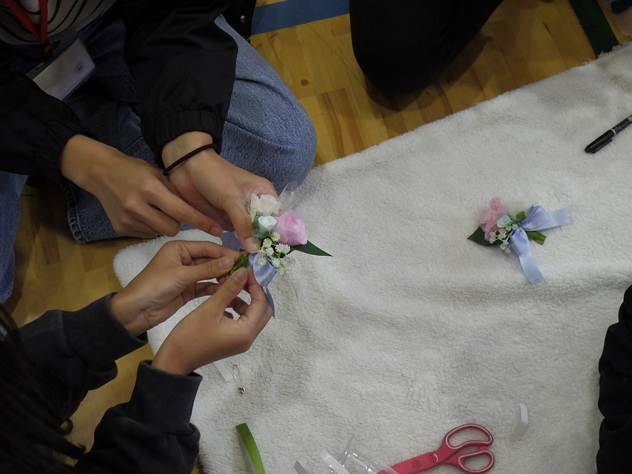 3月の卒業式で,卒業生が胸につけるコサージュを