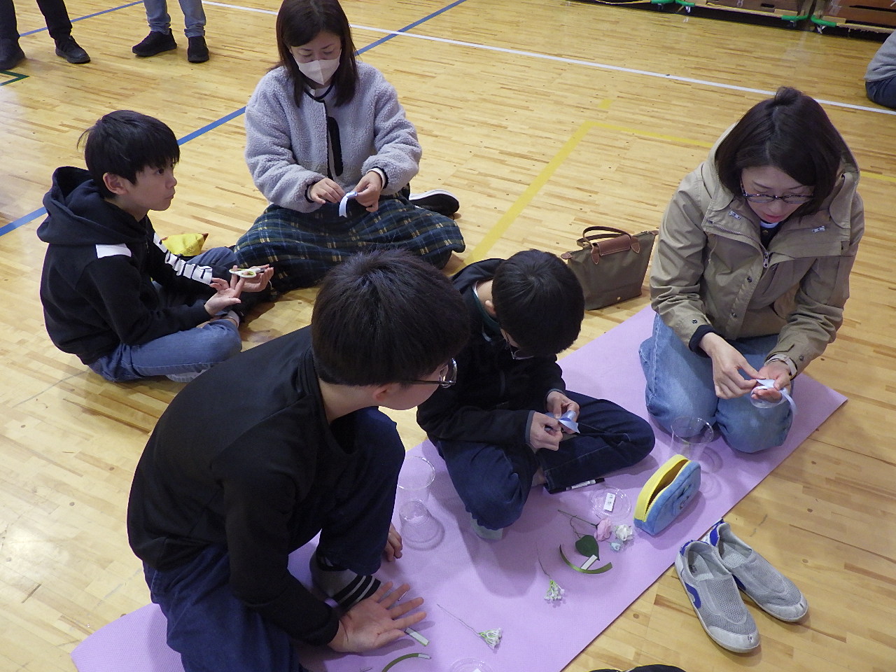 りに,様々な話をしながら,親子や友達と楽しそうに