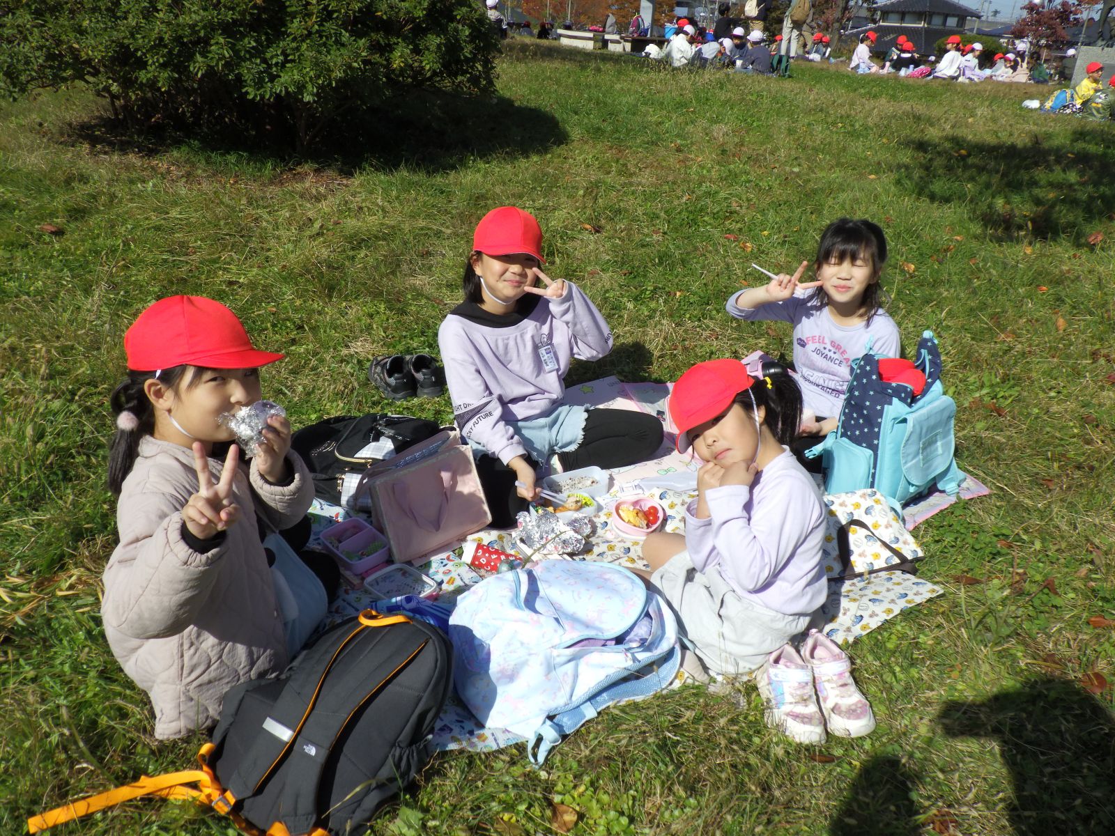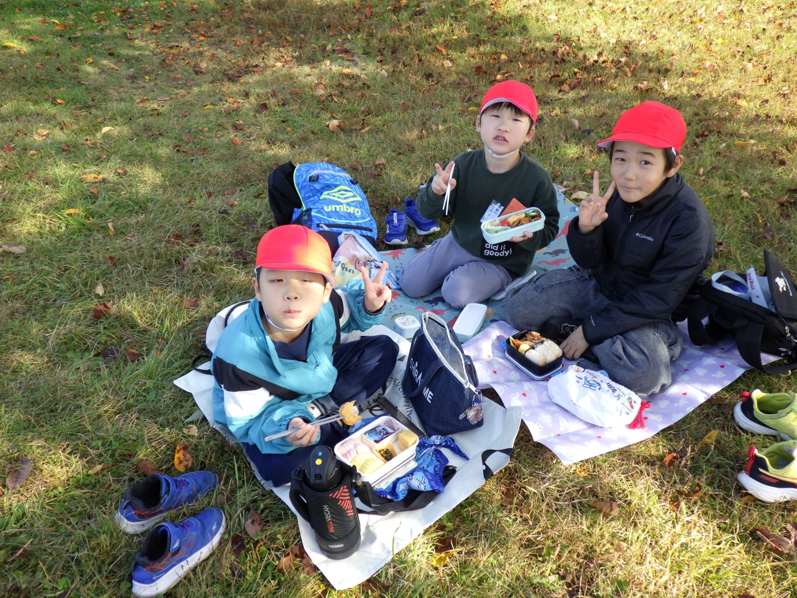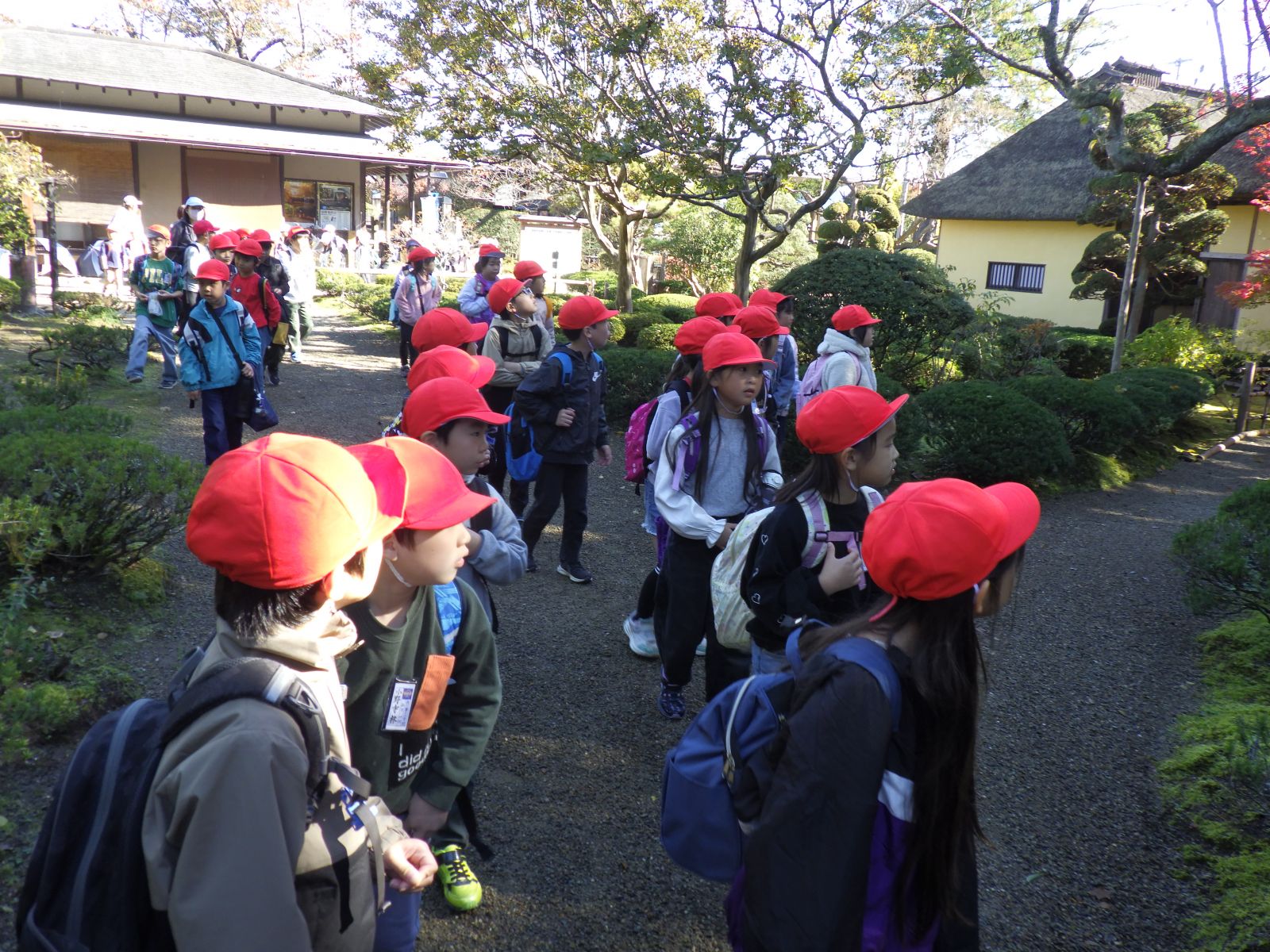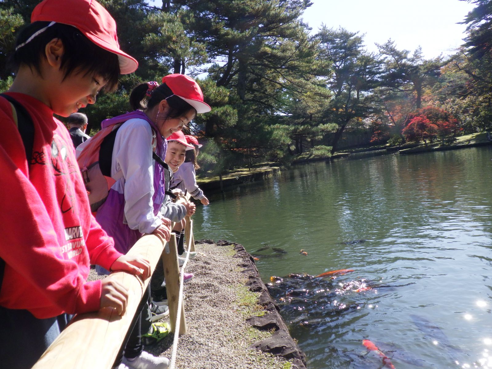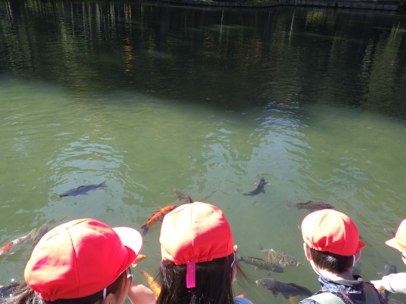 庭を見学し,こいにえさをやりました。お弁当は近く