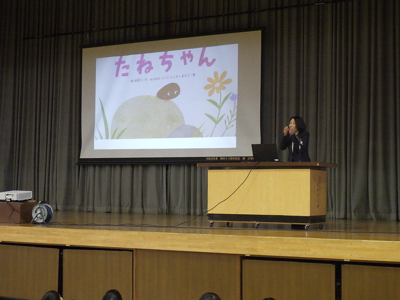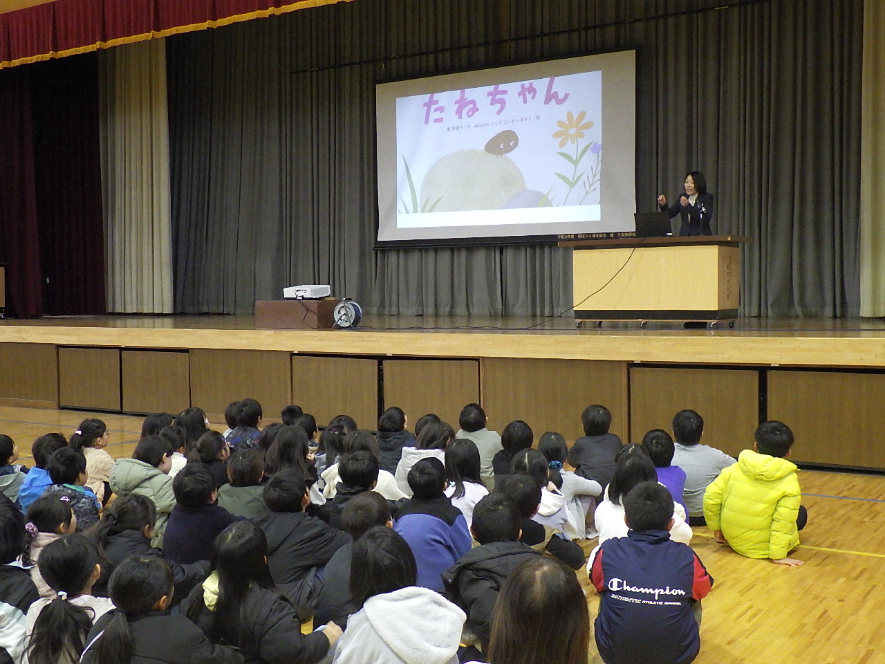 今日は,お話朝会で「たねちゃん」という本の読み