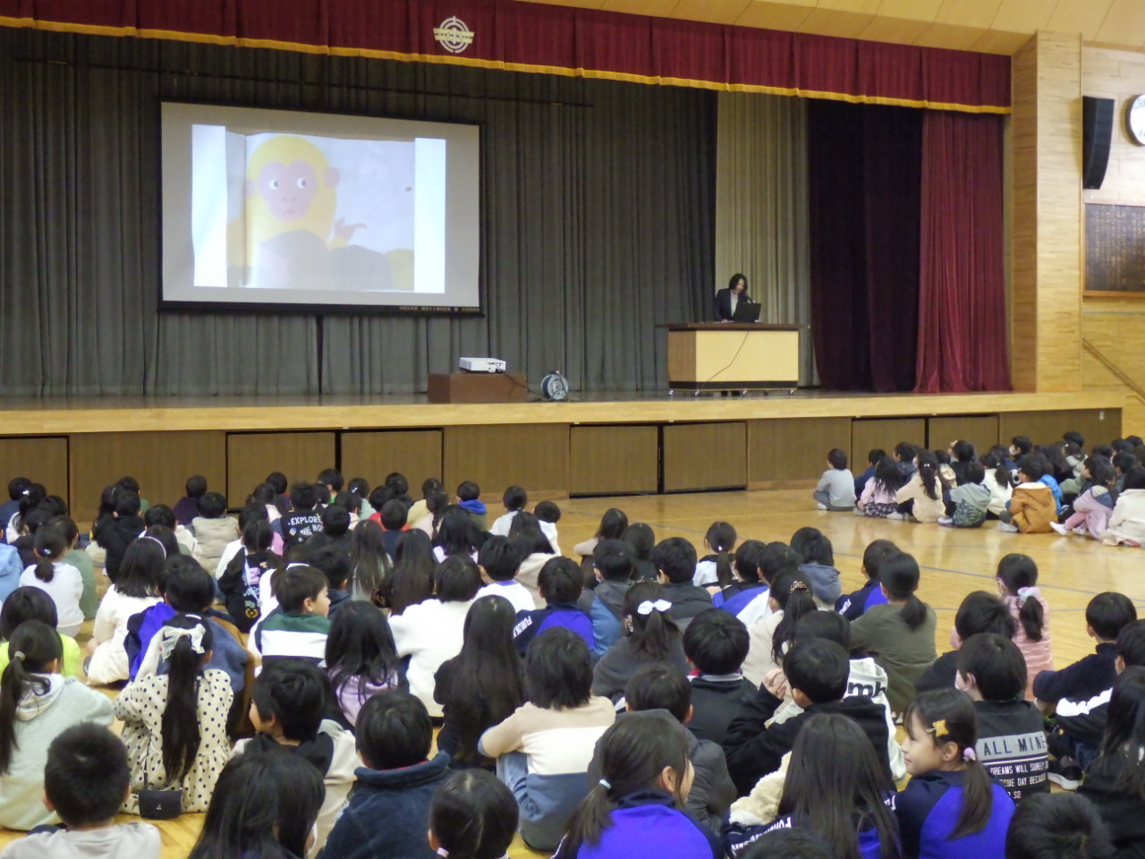 読み聞かせの後に,計画委員会から,代表委員会で