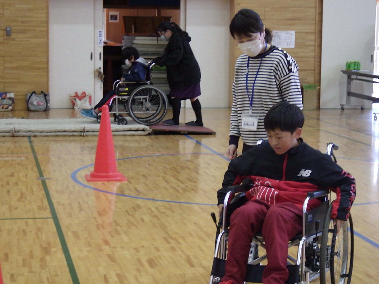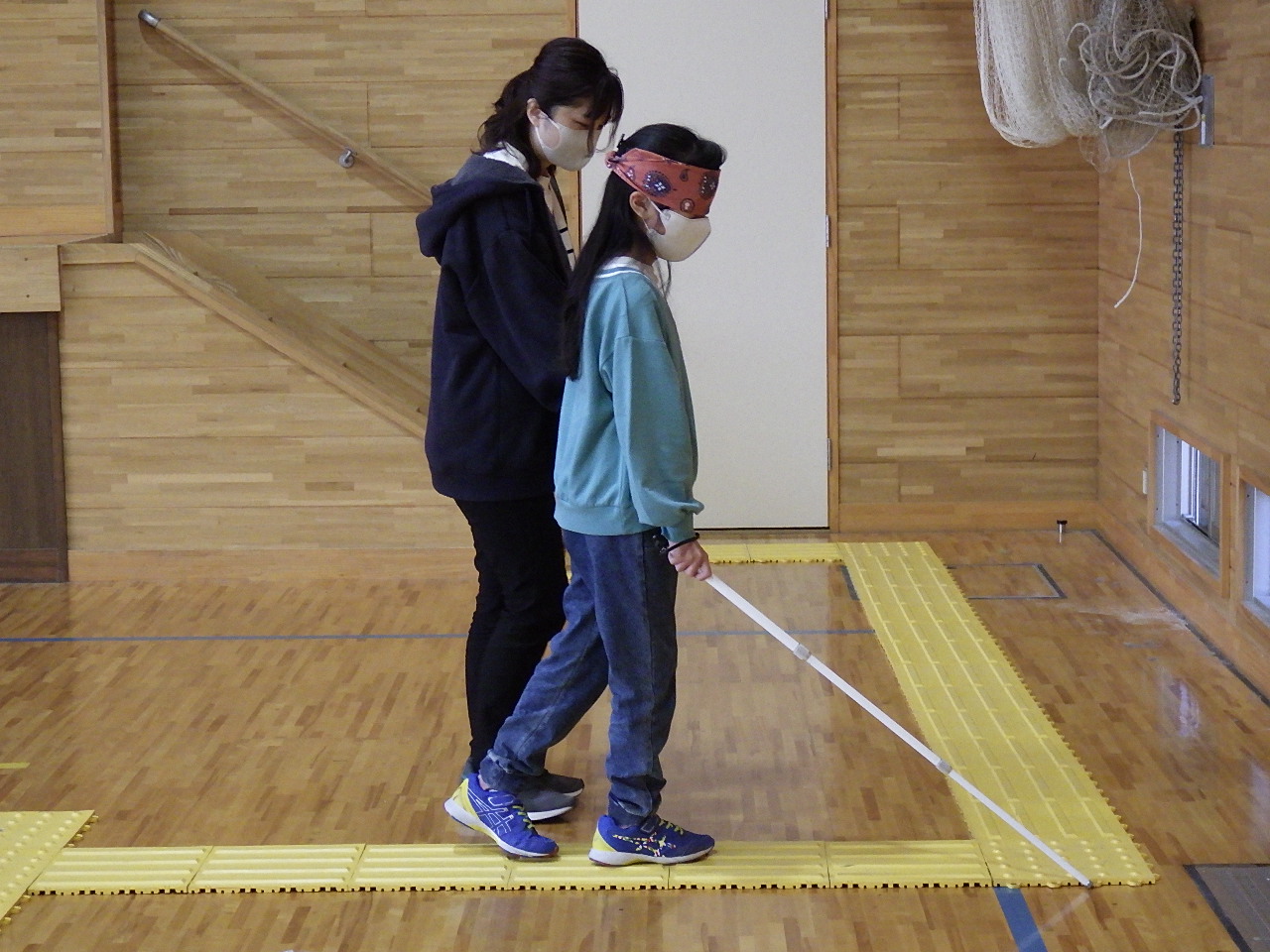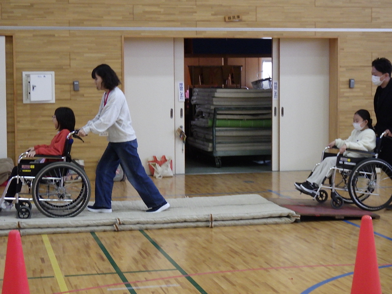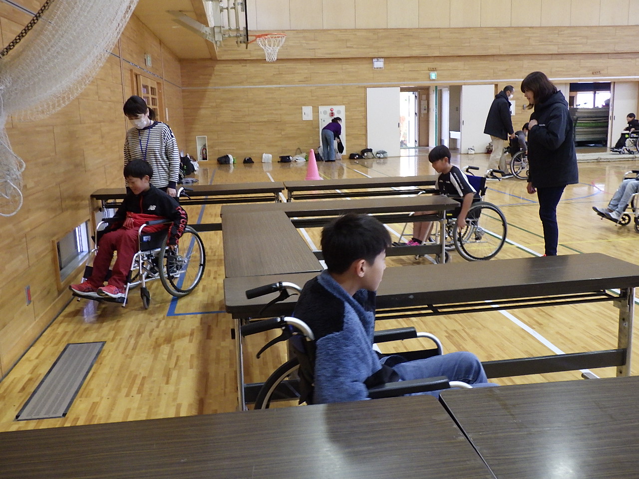 白杖体験や車椅子体験を親子で行いました。体験をし