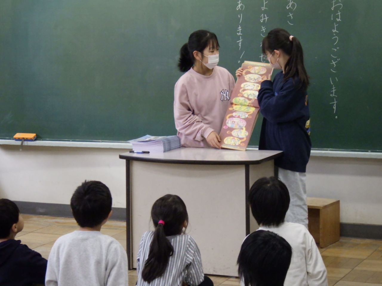 た。1年生が集中して読み聞かせを聴く姿が印象的で