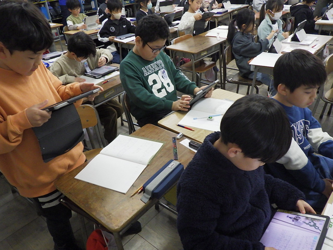 12/1 図書委員による読み聞かせと3年2組算数の研究授業