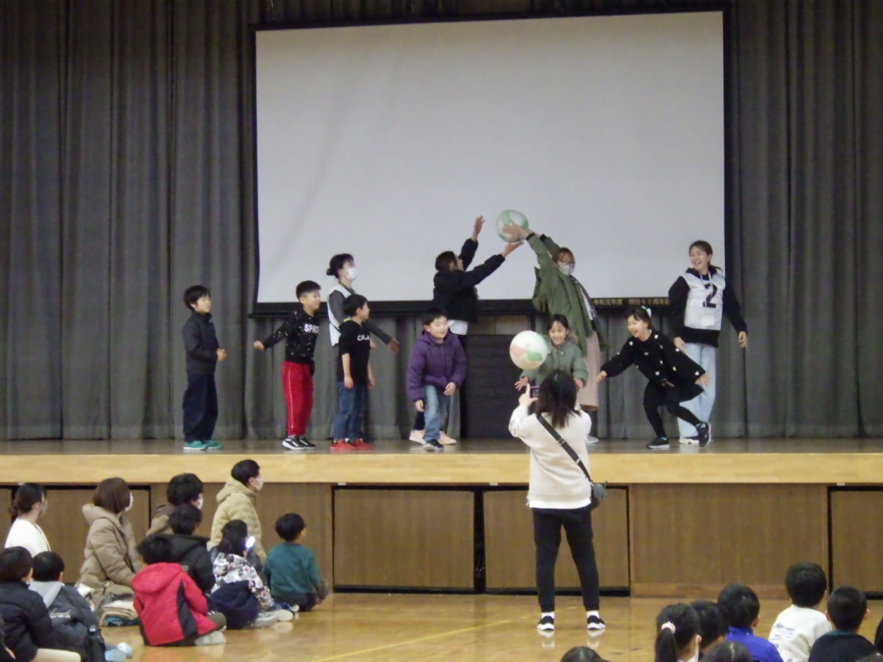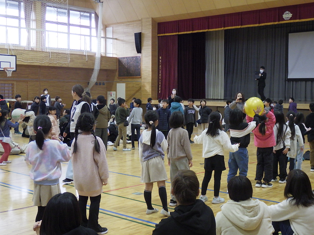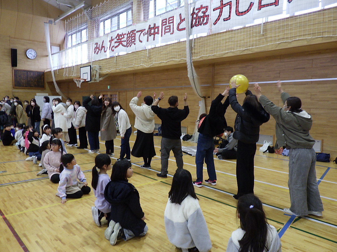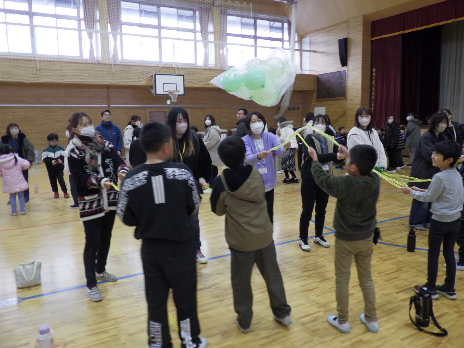 対抗で楽しく行いました。様々なタイプの風船が用意