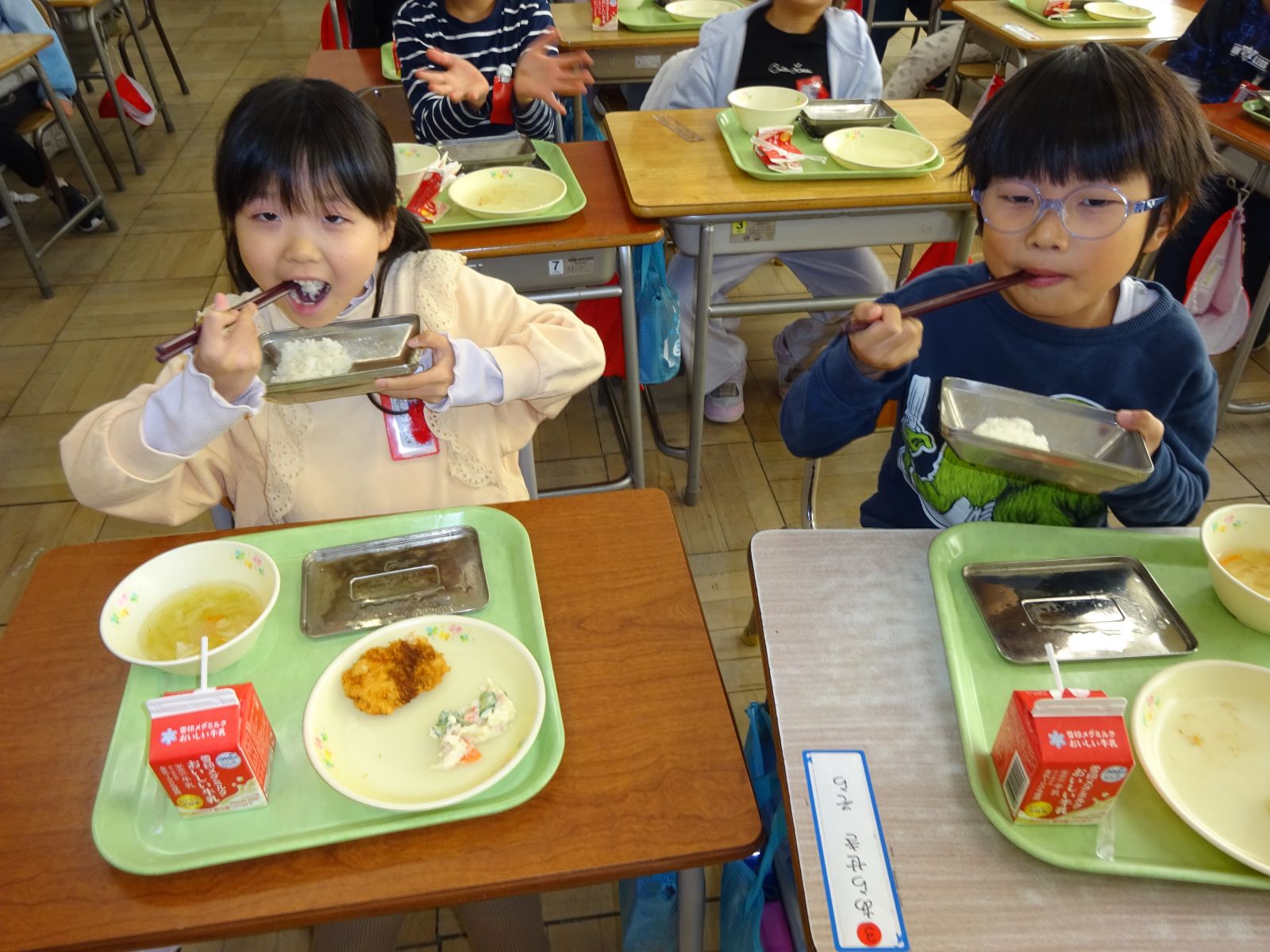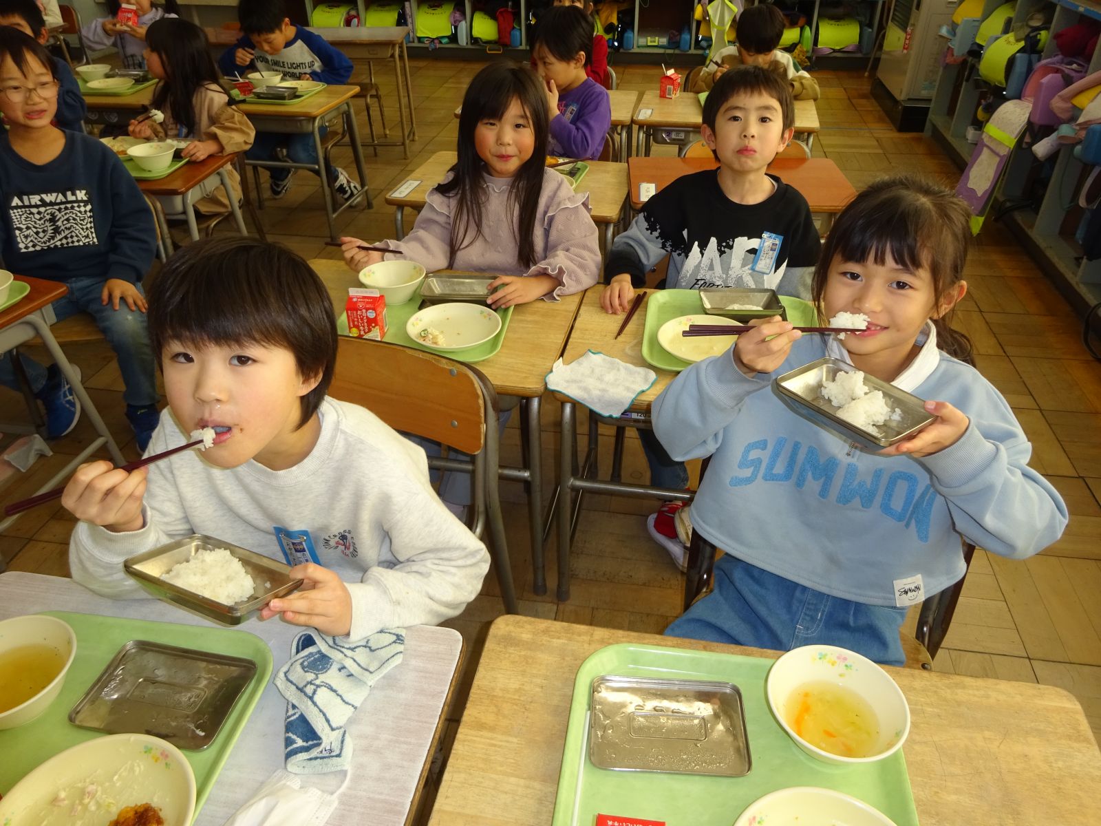 給食では、年間を通して環境保全米の「ひとめぼれ」