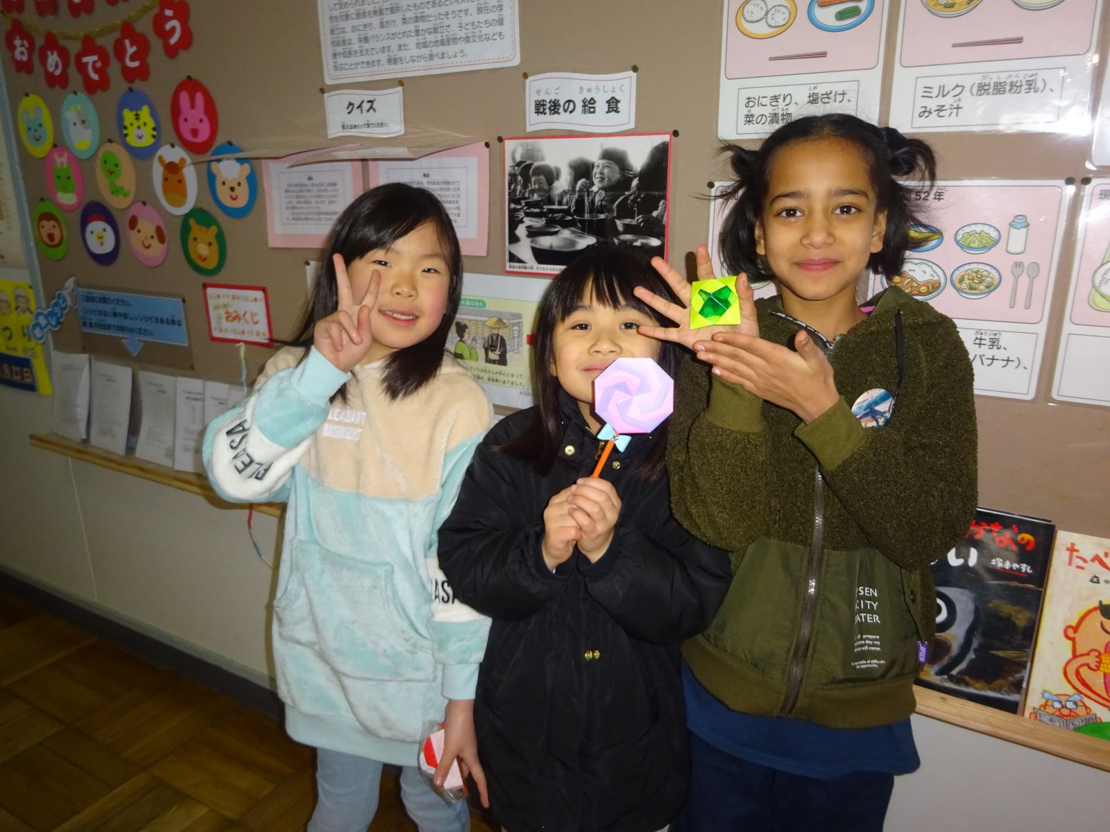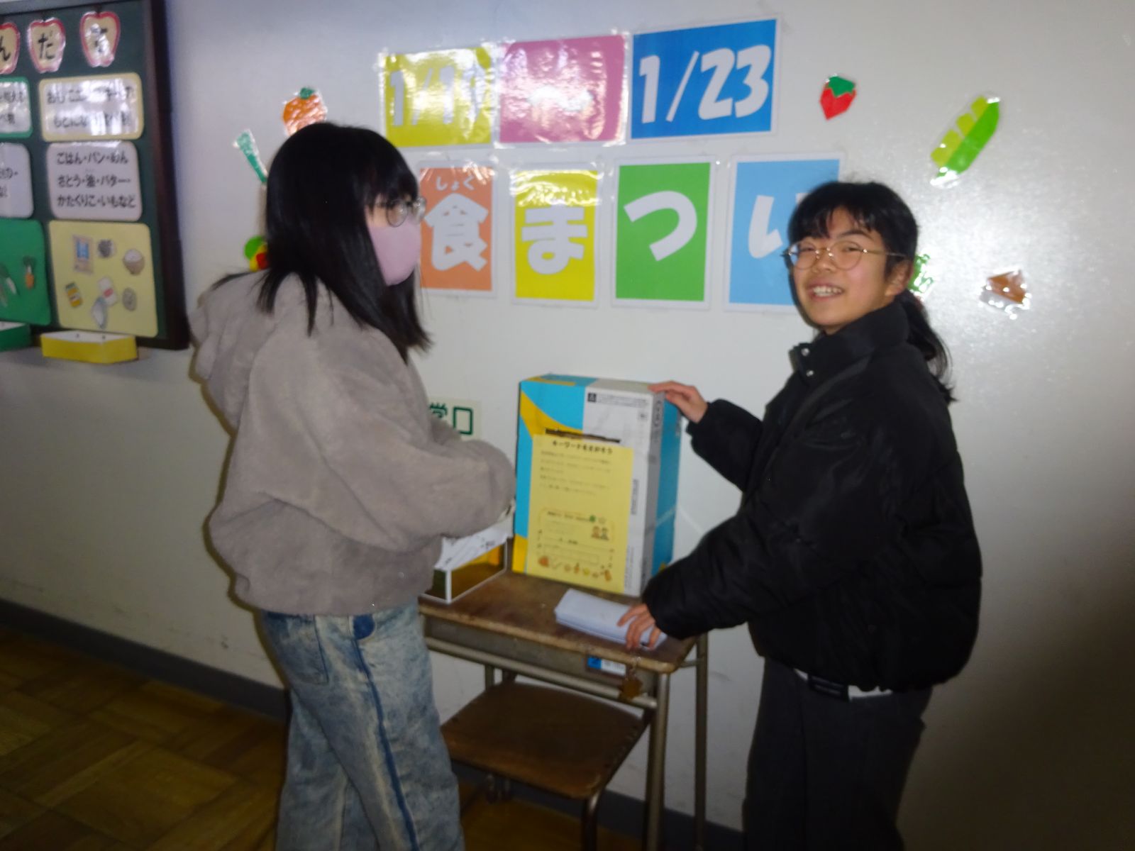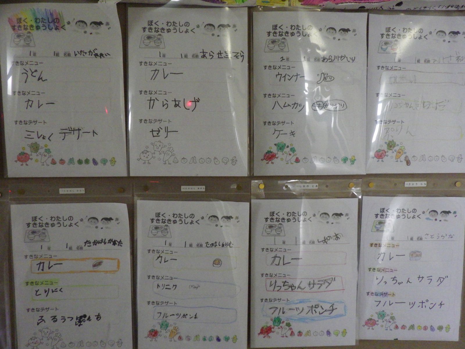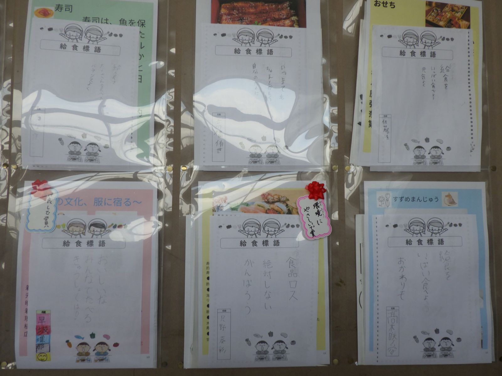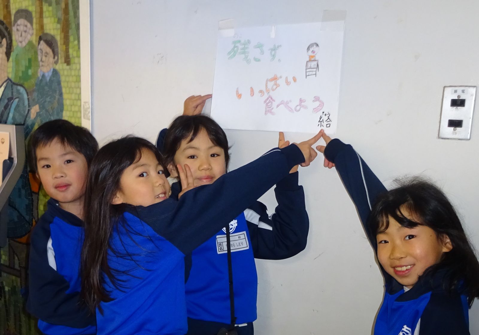 委員会からの賞状を贈呈,給食委員が作成したポスタ