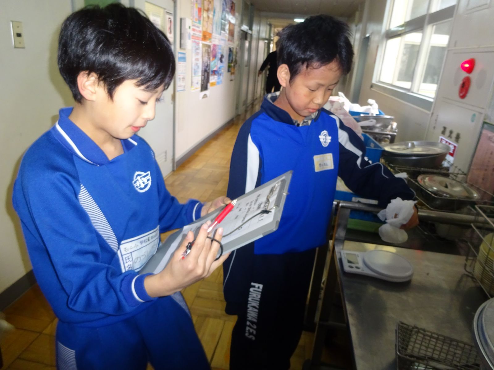 休み時間に「給食〇✕クイズ」,残食量を計算し給食