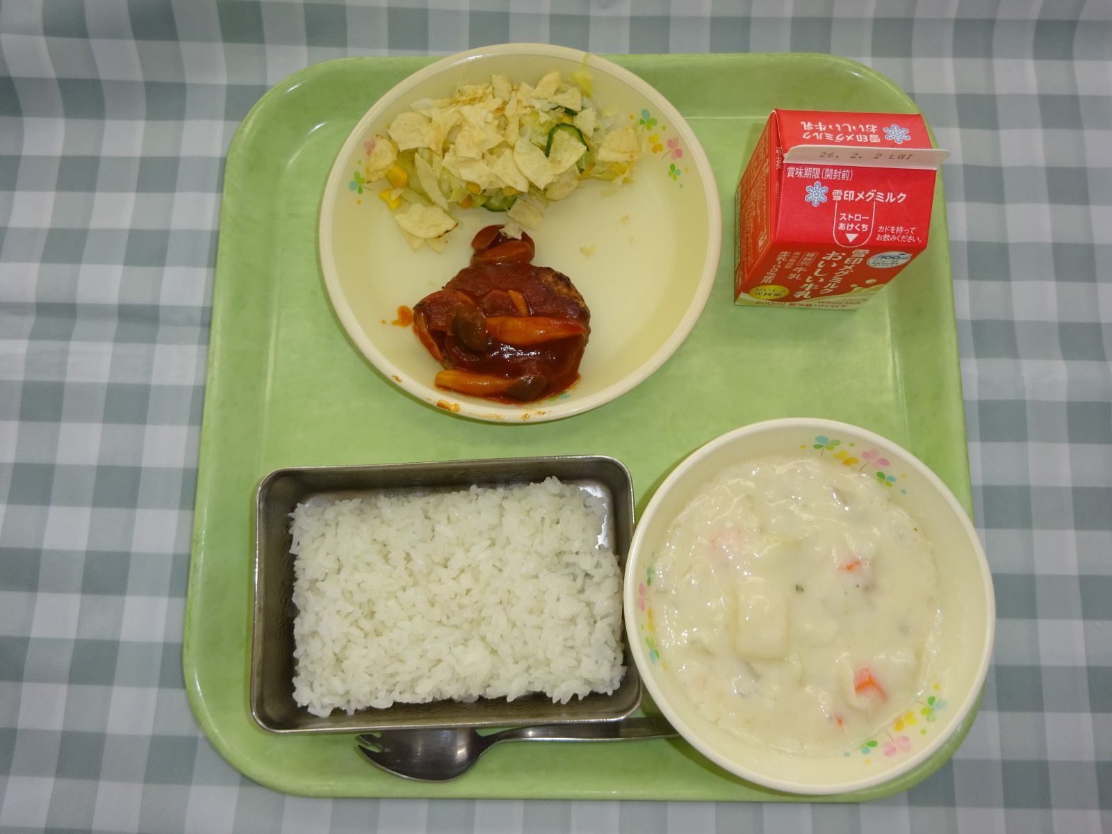 ラダ,クラムチャウダーなど。いつもは給食に使わない