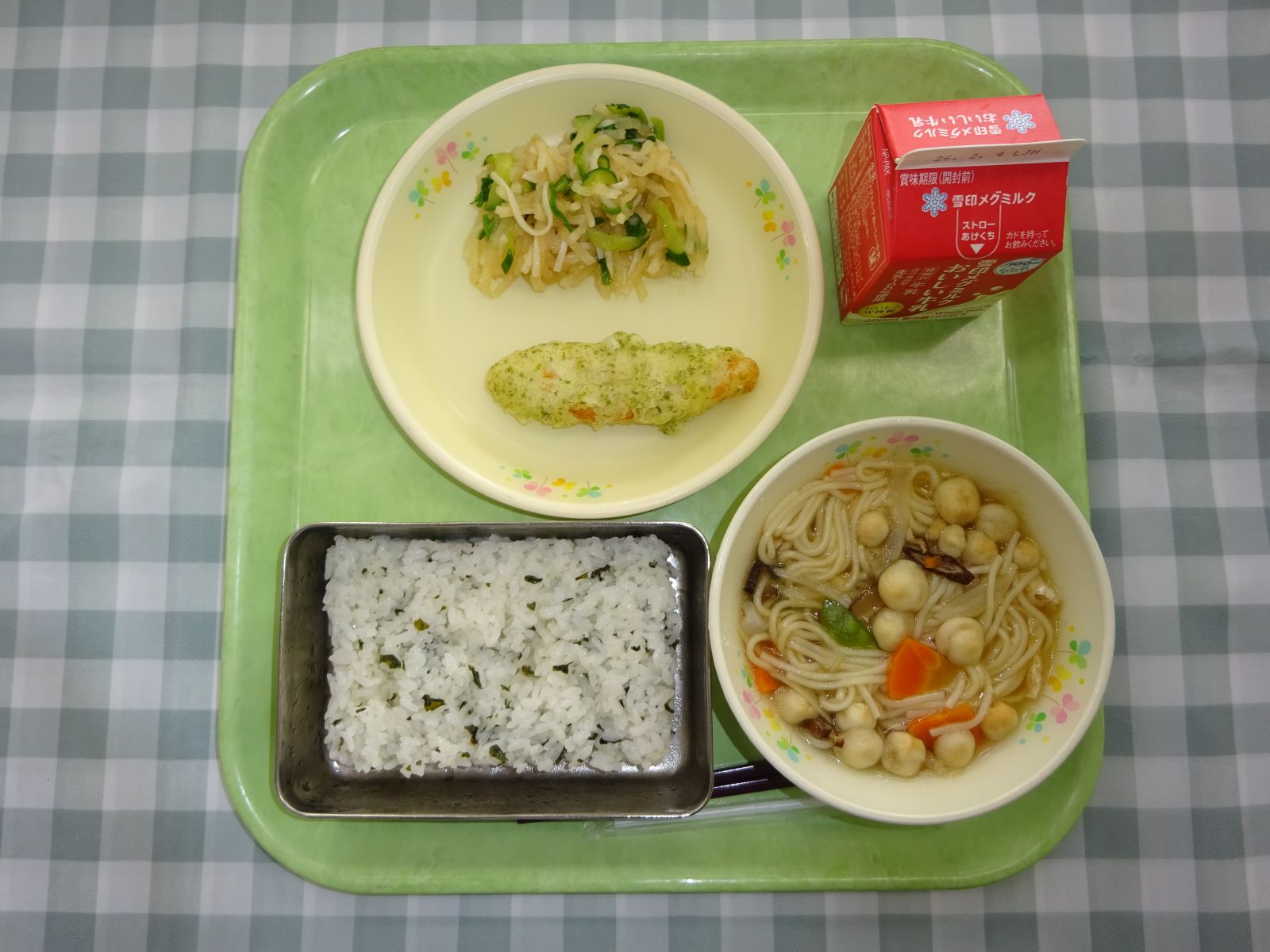 【22日(木)】わかめごはん,いそべあげ,せりとだい