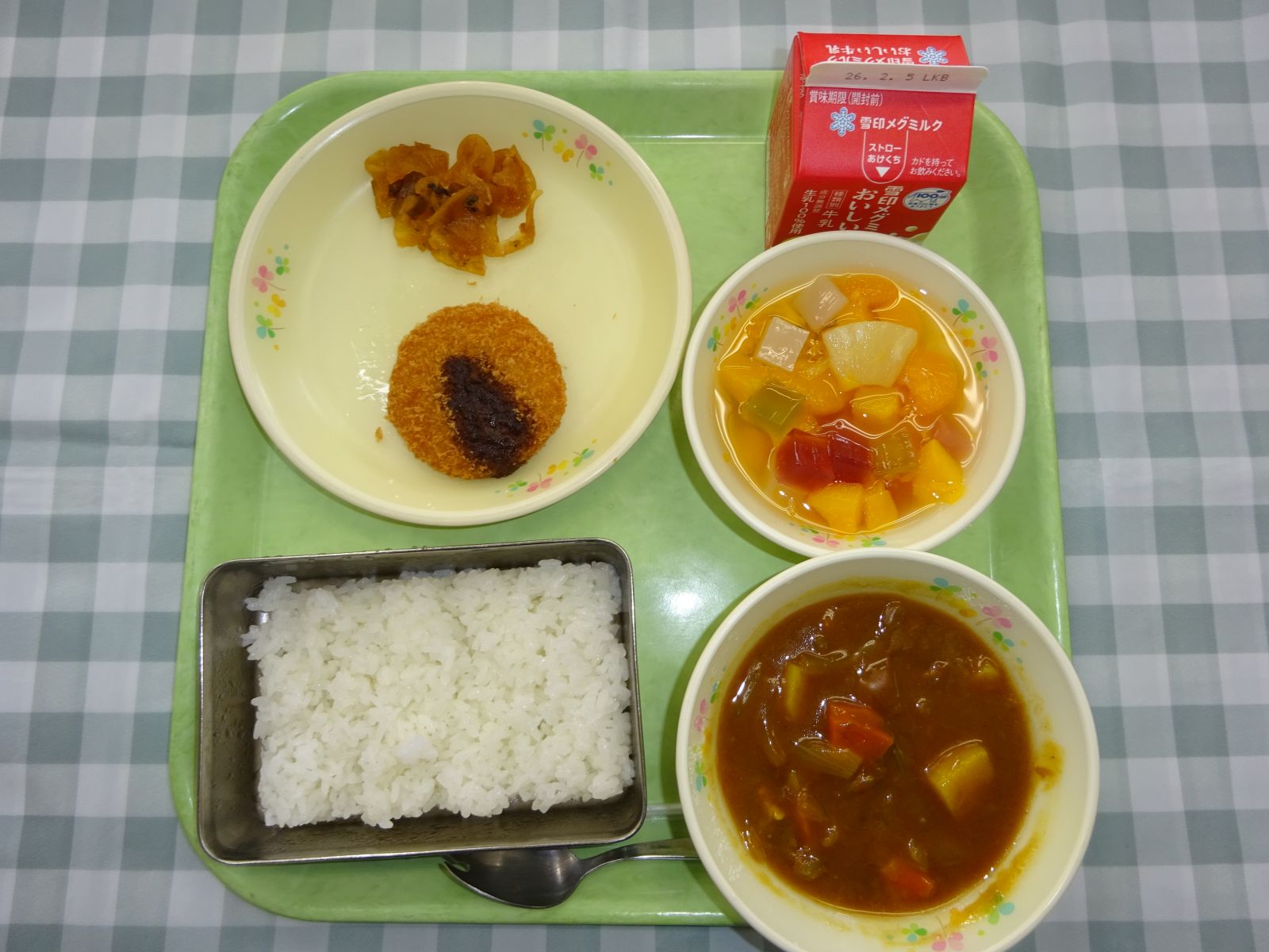 【23日(金)】ポークカレー,ハムカツ,フルーツポンチ