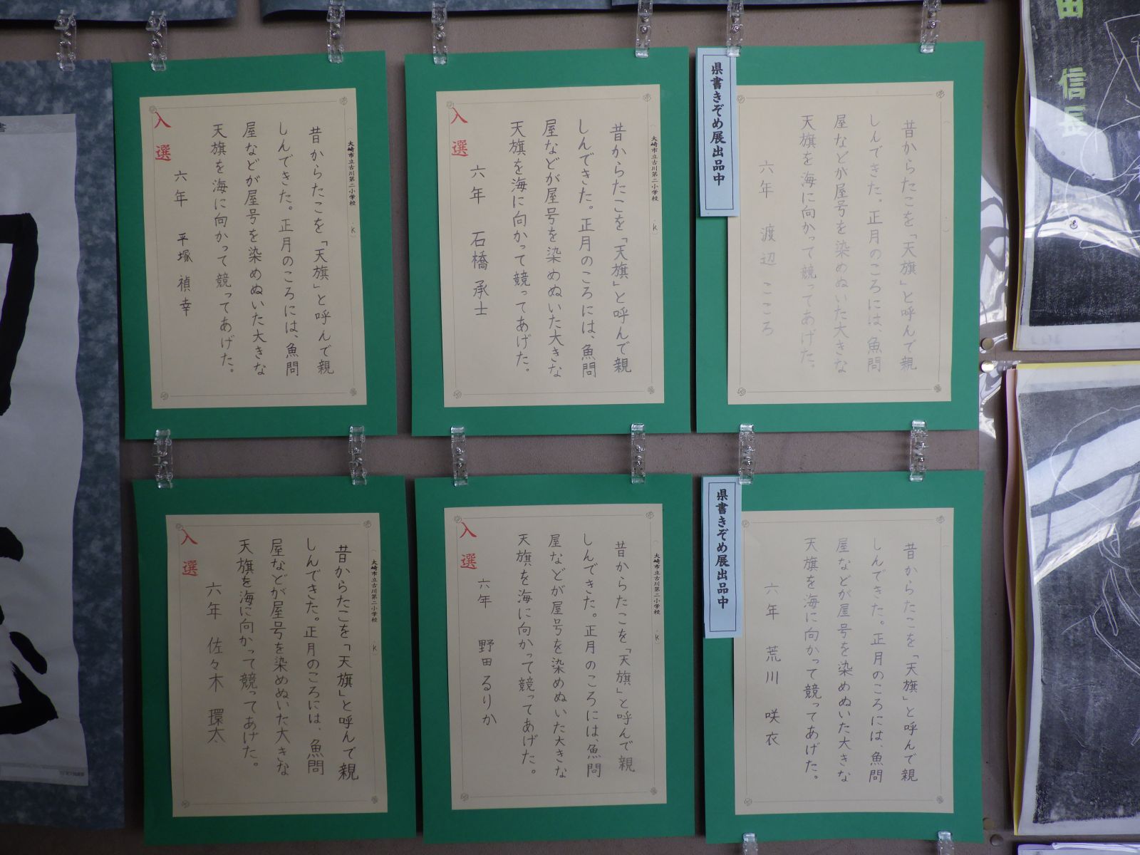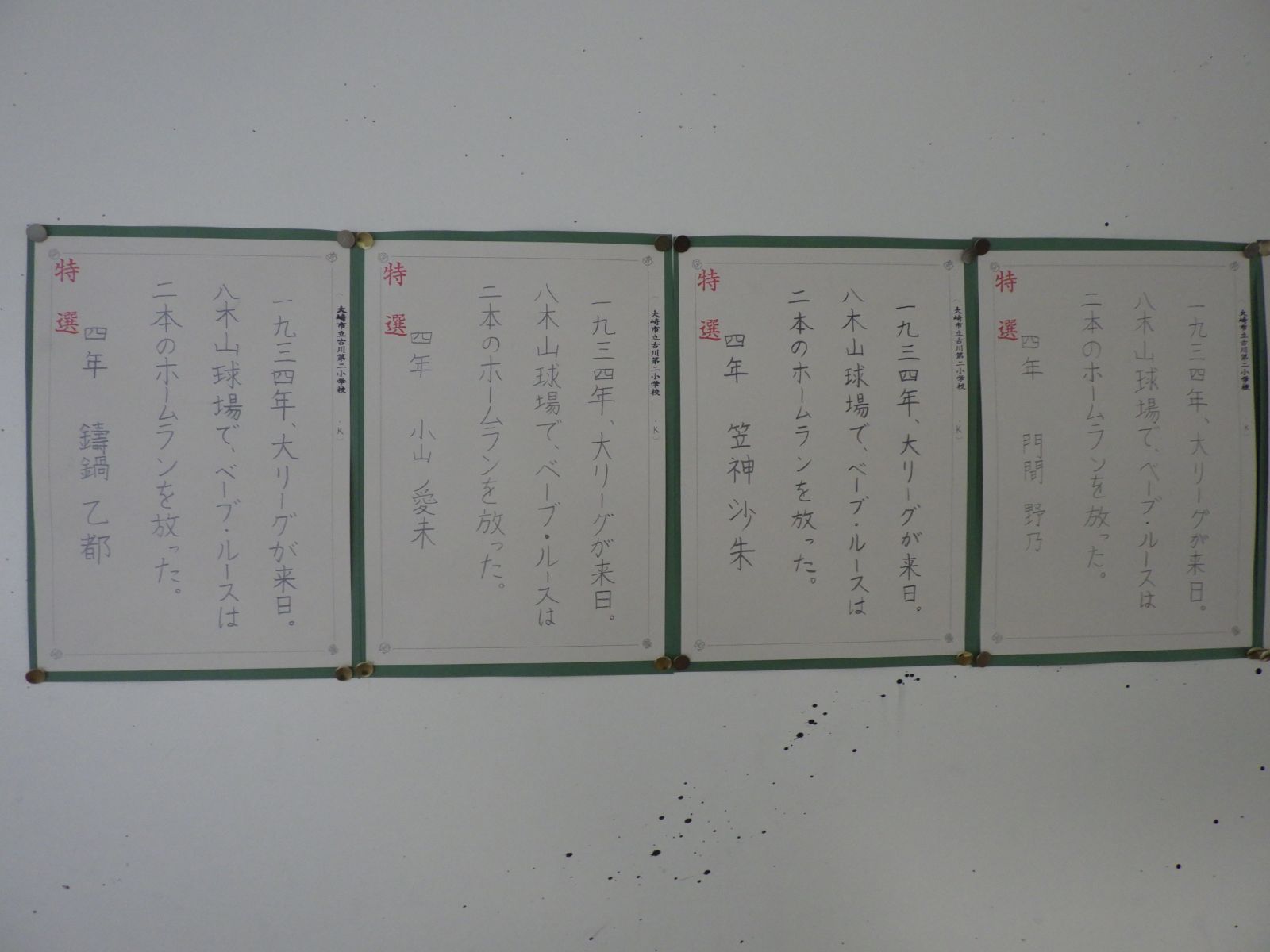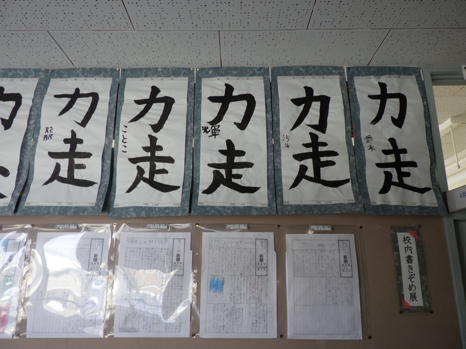 各学年の廊下に,1・2年は硬筆,3~6年は習字,