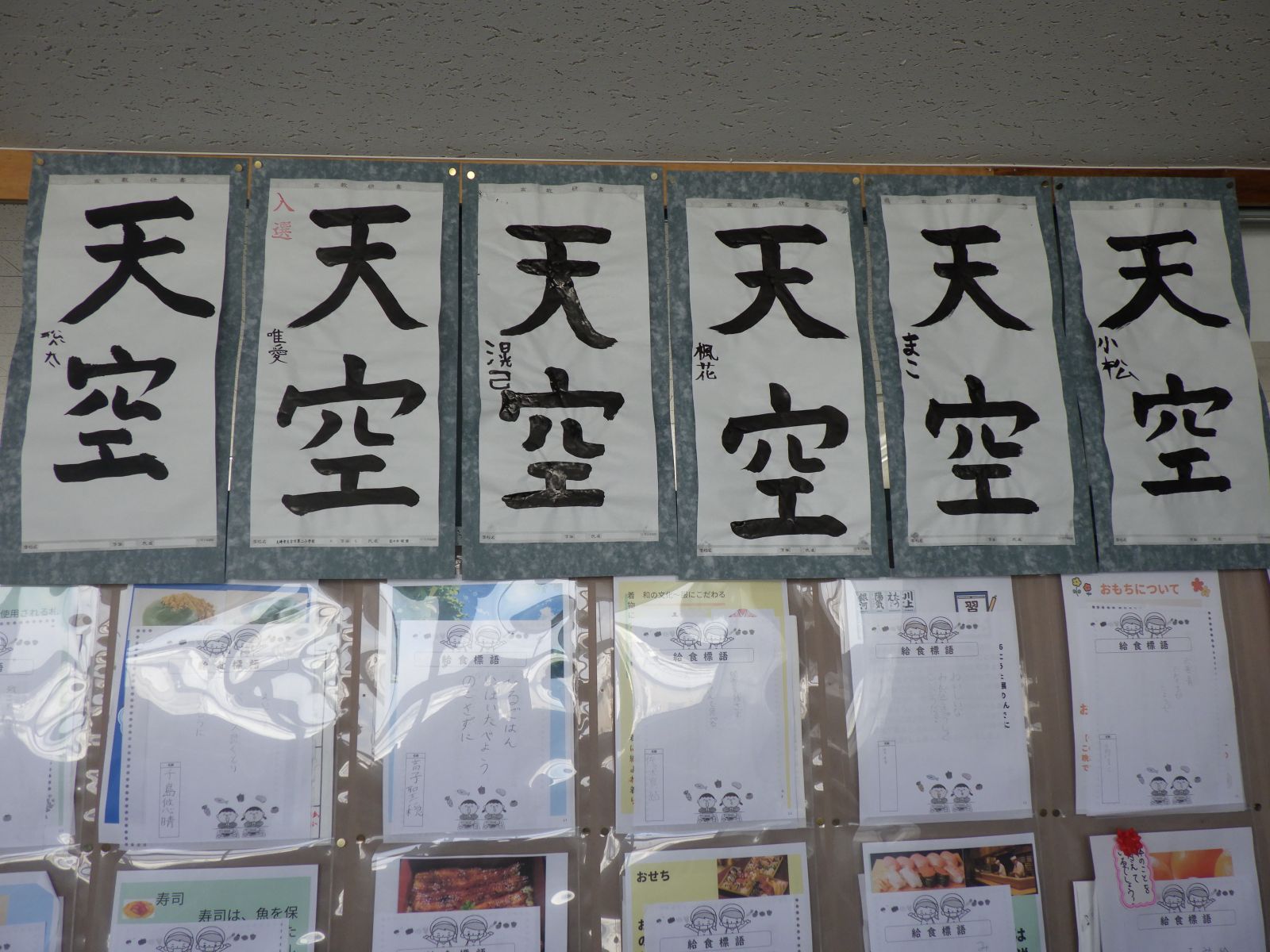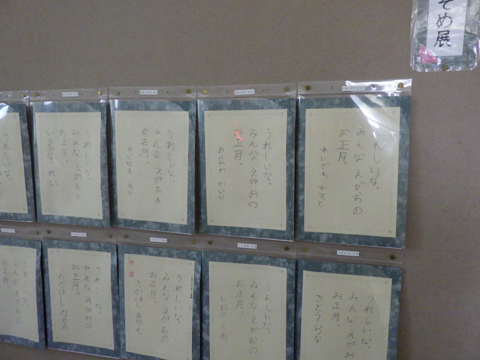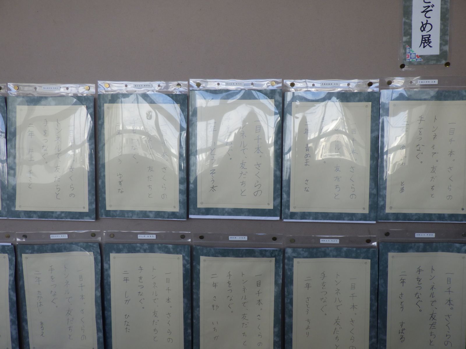 各学年の廊下に,1・2年は硬筆,3~6年は習字,