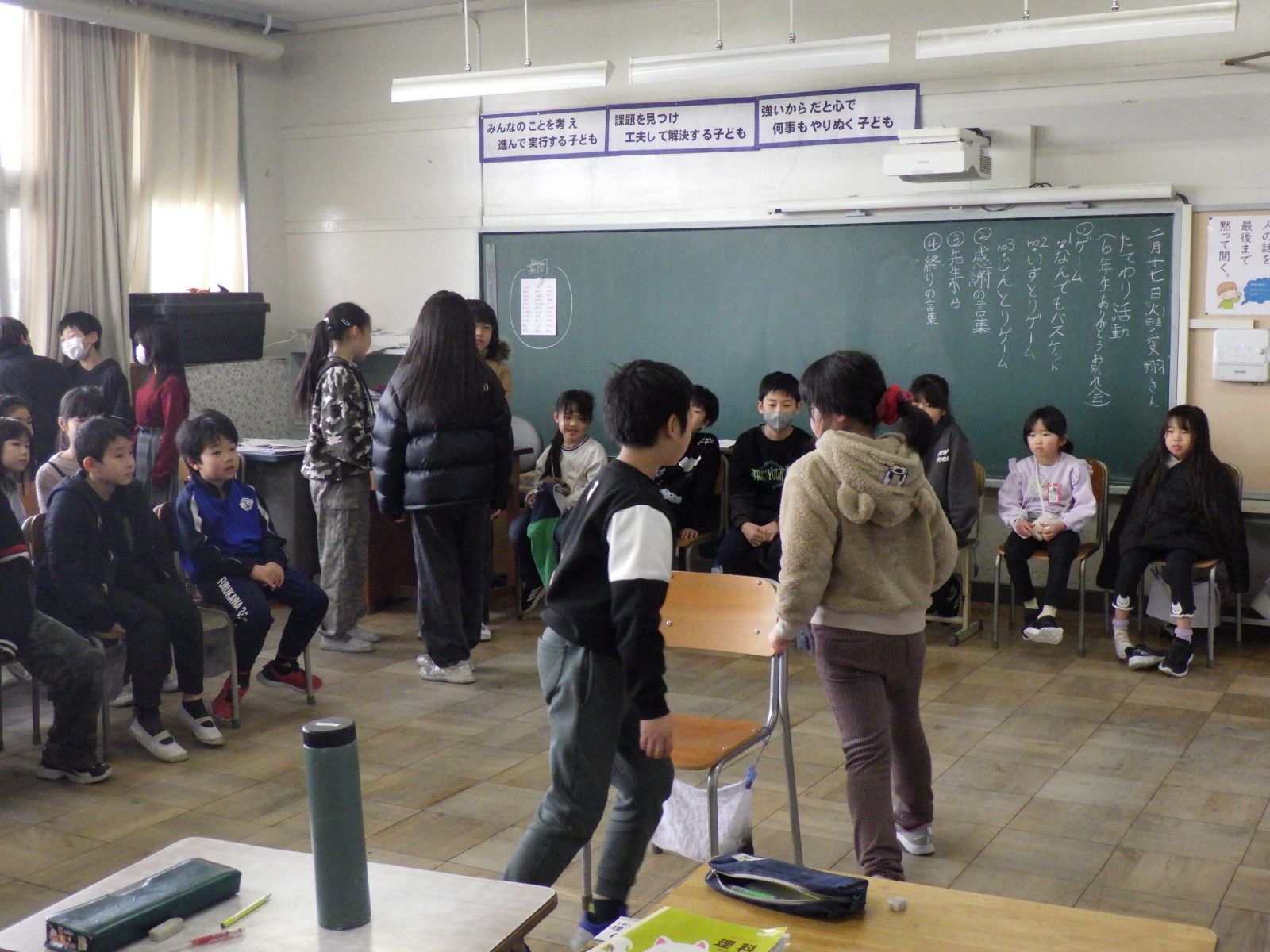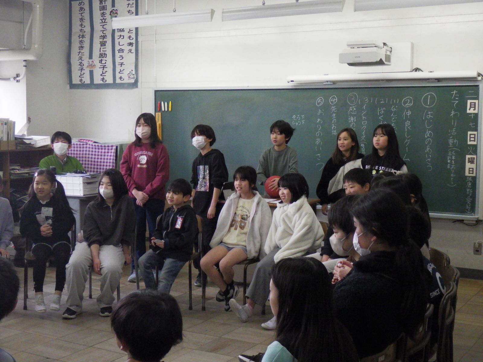 ゲームを考えたり,6年生への感謝の言葉を発表した