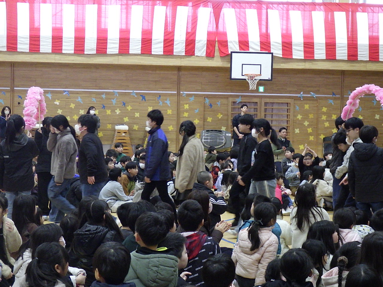 今日は,各学年からの呼び掛けや歌,プレゼントな