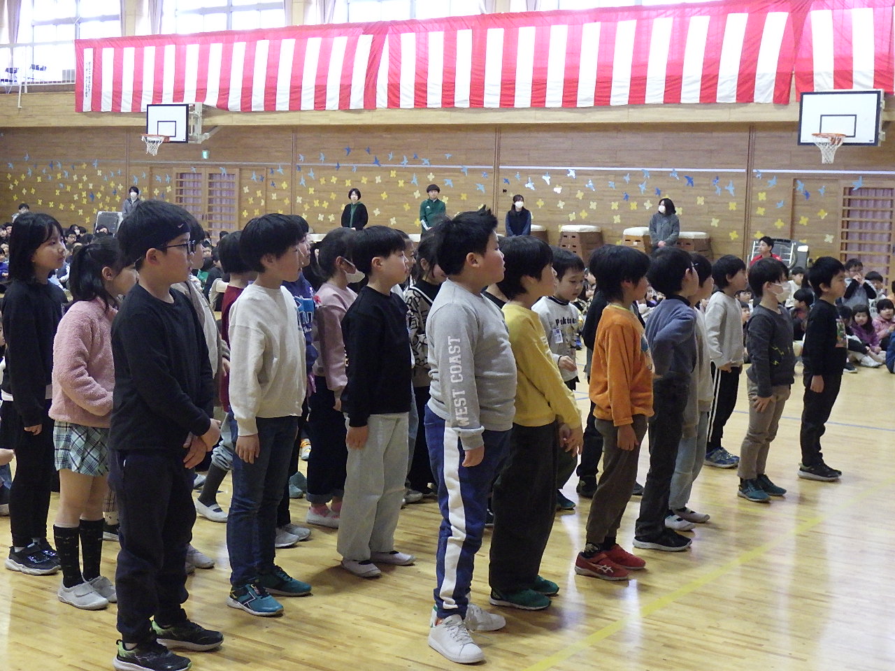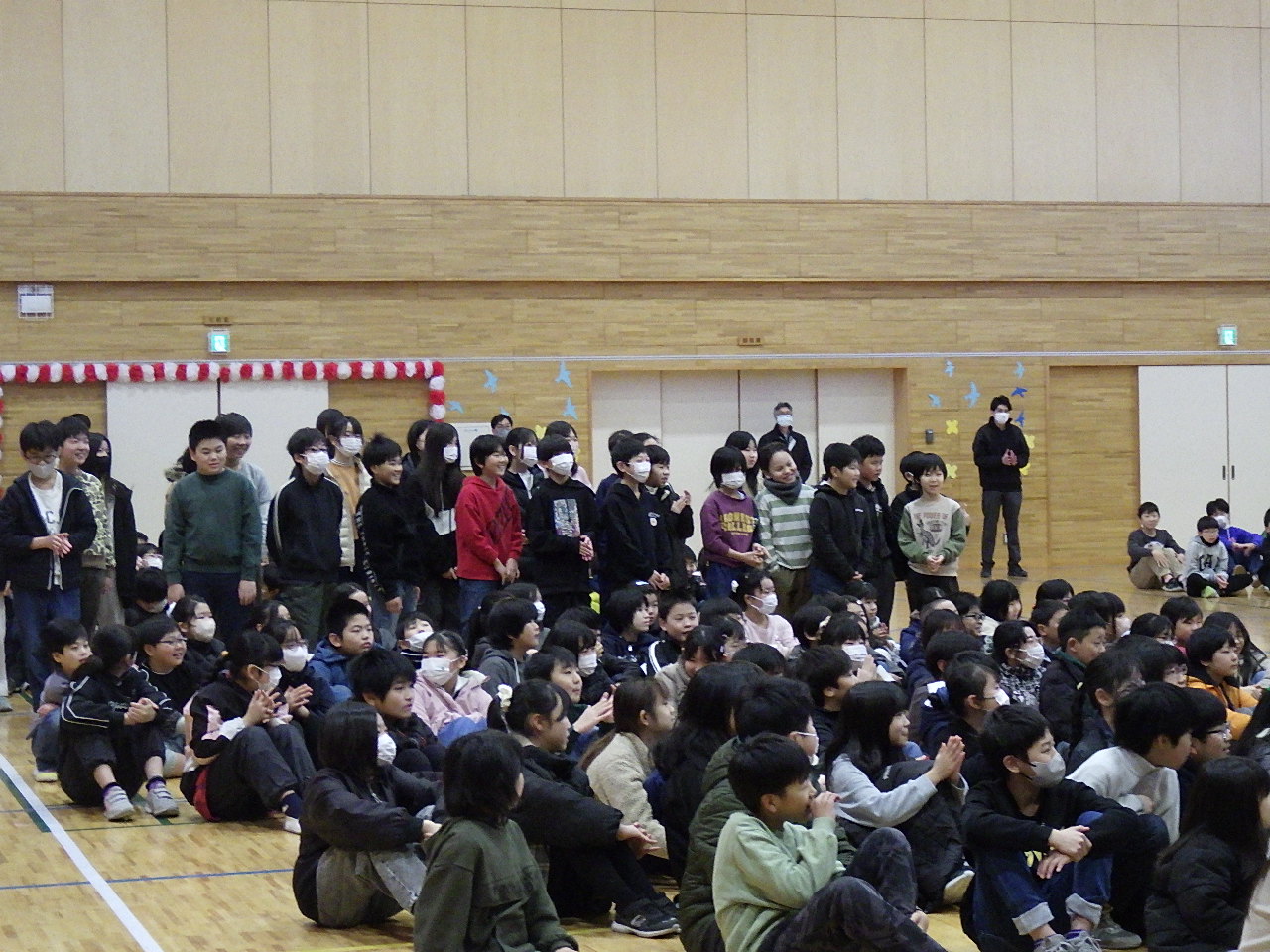 昨日の音楽朝会の後に,大崎市「長なわ跳び大会」