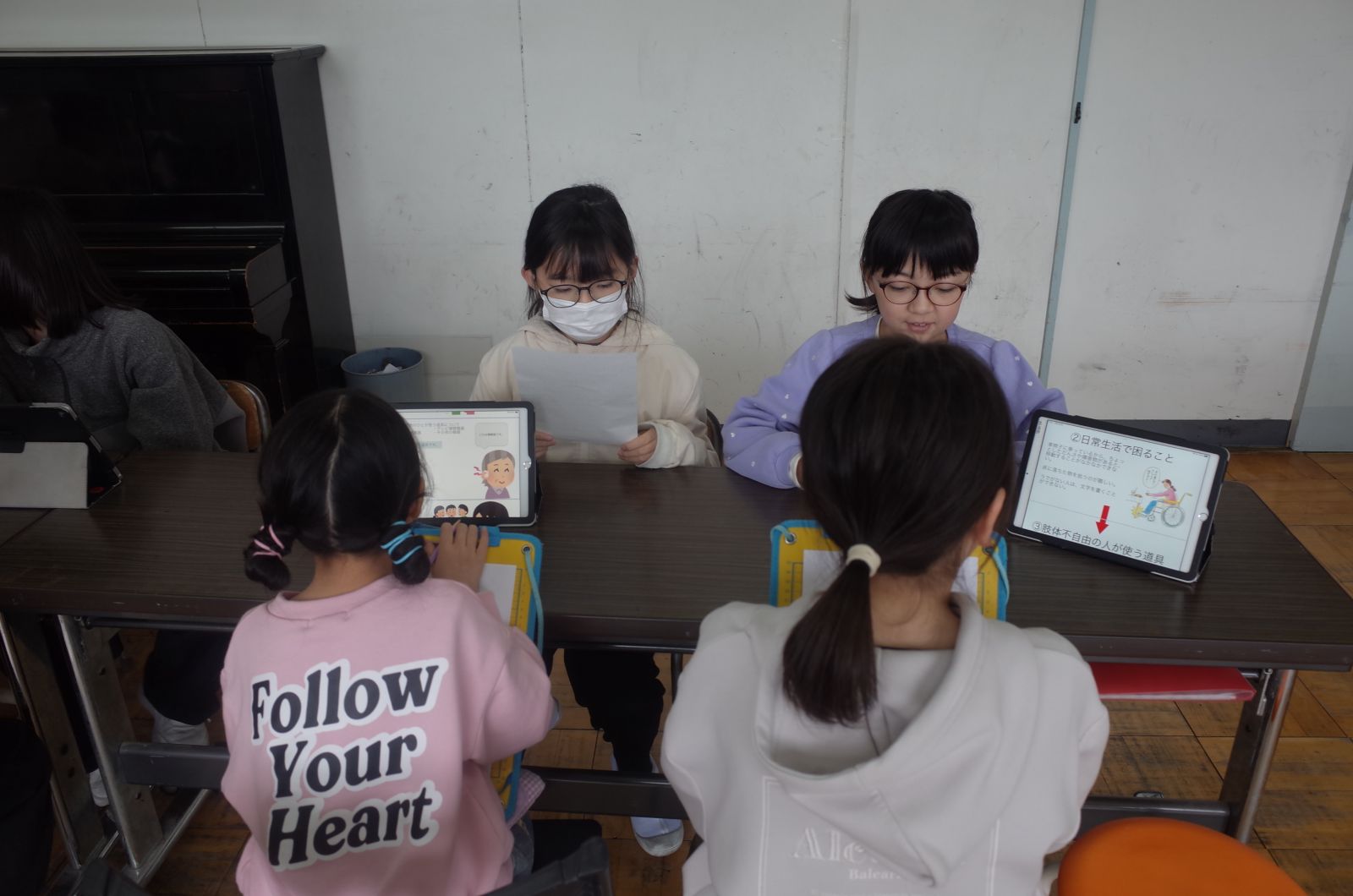 習の時間に福祉について学んだことを発表しました。