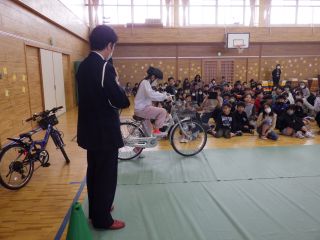 3~6年生対象の交通安全教室があり,古川警察署,交通指導隊の方から説明を受けました。特に今年は,安全な自転車の乗り方,道路交通法改正のポイントなど,丁寧なご指導をいただきました。自転車は,便利な乗り物ですが,交通ルールを守ること,譲り合いの精神が安全運転につながると思います。今日の学習を,日常生活に生かすよう声掛けをしていきたいと思います。