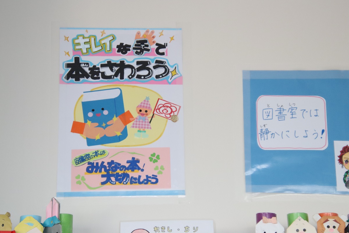 図書ボランティアの皆さんには、掲示物や飾りをつくっていただいたり、壊れた図書の修繕をしていただいたりしています。