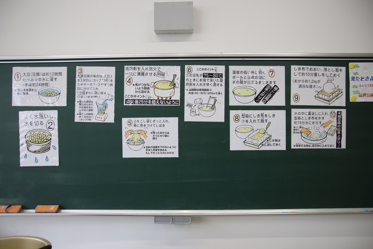 本日、3年生(1組と2組)が豆腐づくりに挑戦しました。