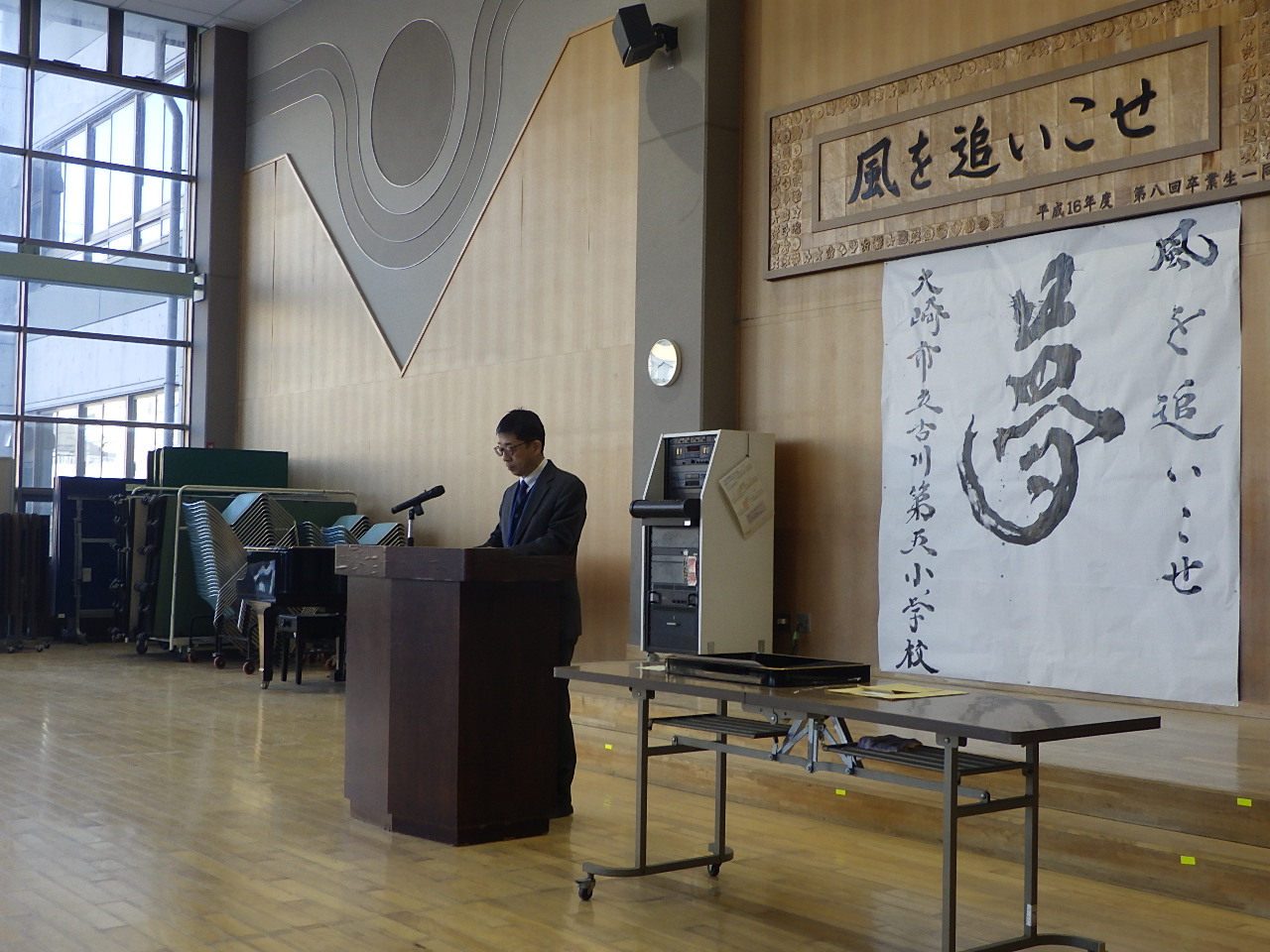 「鉄は熱いうちに打て」という言葉の通り、子供のうちに正しい判断力と行動力を身に付けることは、その後の人生を大きく左右します。「自分と同じように周りの人も大切にすること」、そして最後に「自分がされて嫌なことは人にしない」「いじめは絶対に許さない」という2つの約束を伝え、「古五小の鬼は、皆さんの成長をこれからもずっと見守っています」と話を結ばれました。