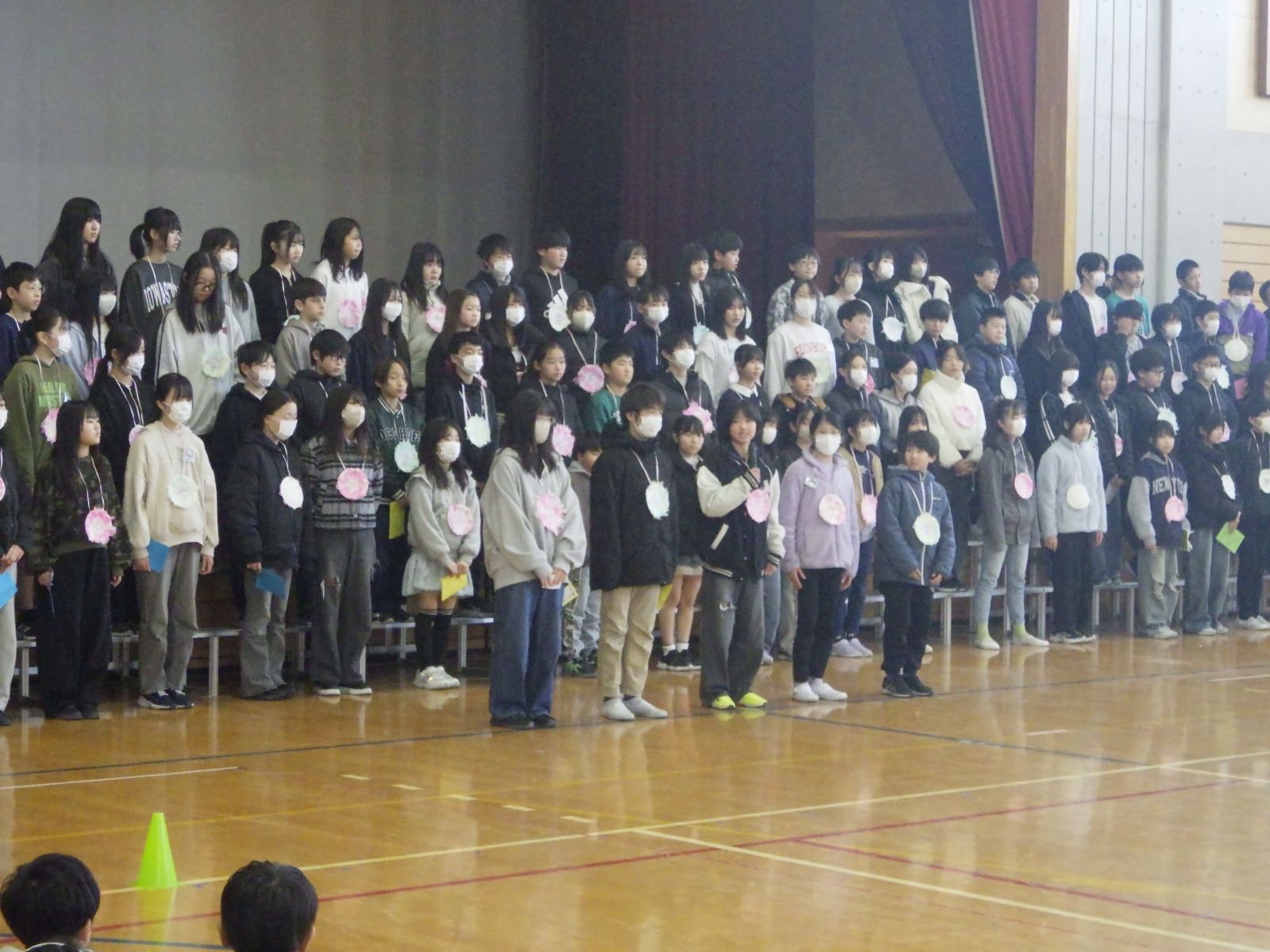 下級生の思いを受け取った6年生からは、お返しとして卒業式で歌う合唱曲「桜の下で」が披露されました。その洗練された美しいハーモニーに、下級生たちは静かに聴き入り、最高学年の凄さを改めて胸に刻んでいるようでした。