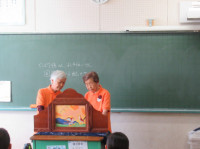 ブックポケットの皆さんによる読み聞かせがありました。今日は中学年対象です。学年の発達段階に合わせた内容の物語を用意していただきました。子どもたちは真剣に聞いていました。