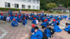 1日目,午後の活動はウオークラリーです。出発前につどいの広場で準備している様子です。頑張ってほしいと思います。天気が良さそうで何よりです。