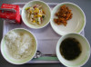 初めてのセンター給食です。ドライカレー,カラフルマカロニサラダ,モロヘイヤスープです。